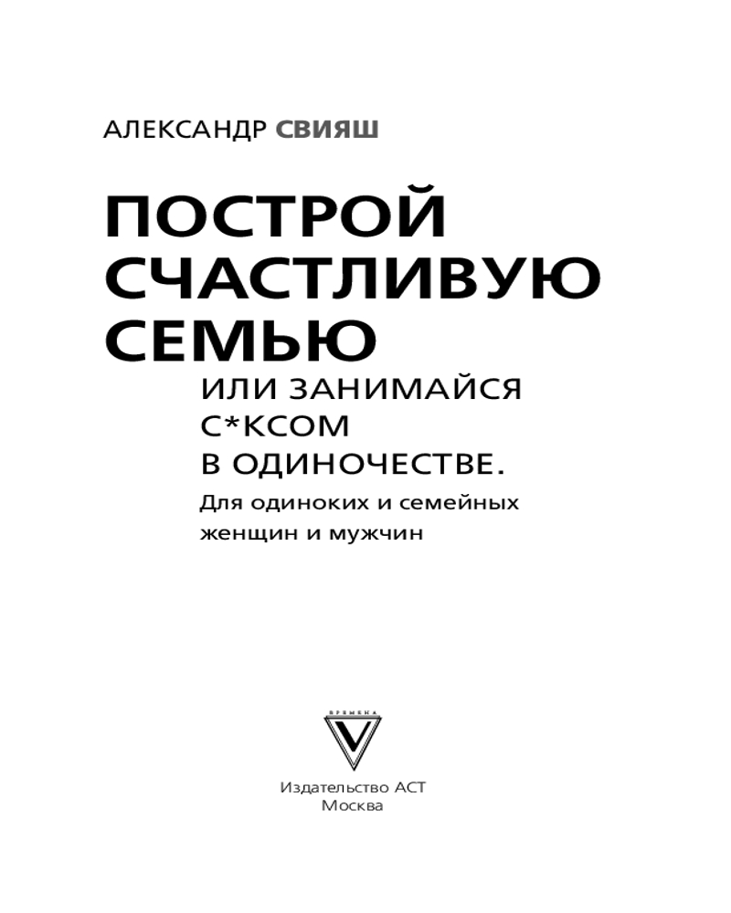 | Построй счастливую семью или занимайся с*ксом в одиночестве. Для одиноких и семейных женщин и мужчин    	Александр Григорьевич Свияш