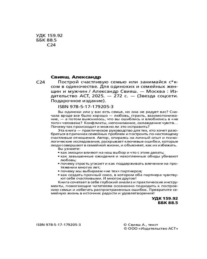 Книга сочетает в себе глубокий анализ и практические инструменты, помогающие читателям осознанно подходить к построению семьи и избегать распространенных ошибок. Превратите семейную жизнь в источник радости и удовлетворения!  |