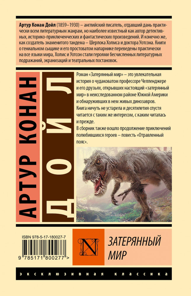 Серия: Эксклюзивная классика. Лучшее Роман «Затерянный мир» — это увлекательная история о чудаковатом профессоре Челленджере и его друзьях, открывших настоящий «затерянный мир» в неисследованном районе Южной Америки и обнаруживших в нем живых динозавров. Книга ничуть не устарела и десятилетия спустя читается с таким же интересом, с каким читалась и прежде. |