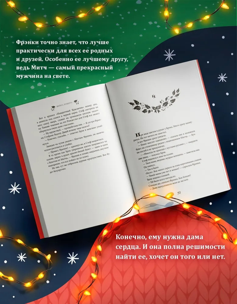 Серия: Рождественская история. Горячий шоколад Найдется ли фраза прекраснее и романтичнее чем «и жили они долго и счастливо»? Френки Лейн, владелица магазинчика «Праздничное настроение» с уверенностью ответит, что нет. Разве только «и жили они долго и счастливо благодаря Френки Лейн». Ведь Френки знает, что лучше практически для всех ее родных и друзей. К примеру, она считает, что ее сестра Стеф еще слишком молода, чтобы отказываться от любви. Дочь Френки Натали непременно должна открыть свою кондитерскую лавку. А застенчивой Элинор нужно сменить образ. Фрэнки уверена, что могла бы помочь им всем, если бы они только позволили ей — и если бы вся ее помощь не закончилась катастрофой. |