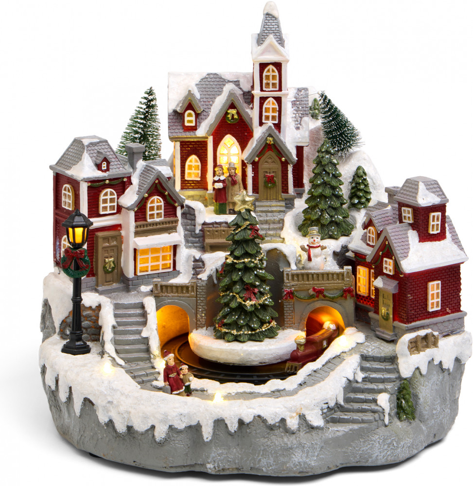 Погрузитесь в сердце зимней сказки — где каждый домик, каждая ёлка и даже уличный фонарь окутаны праздничным сиянием. Эта музыкальная фигурка — не просто украшение, а целый живой мир Рождества, созданный для того, чтобы дарить радость и тепло. |
