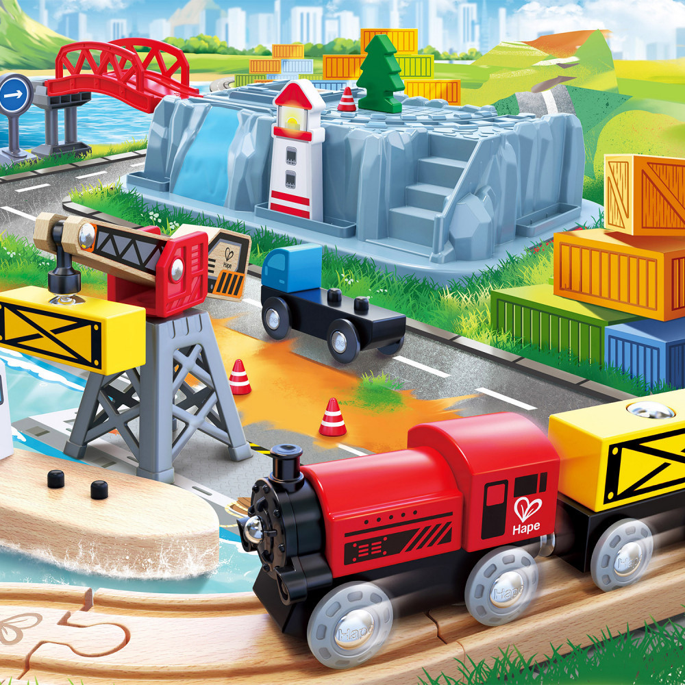 | Hape Игровой набор «Железная дорога. Портовая станция»