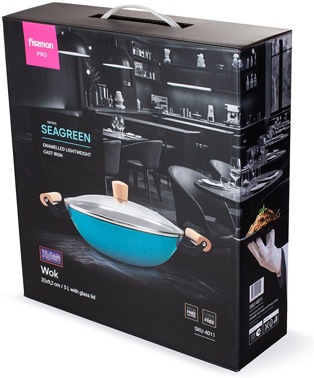 Сковороды Seagreen отвечают международным экологическим стандартам, имеют соответствующие сертификаты. При производстве посуды компания Fissman не применяет PFOA, токсичные, канцерогенные компоненты. Приготовленная пища безвредна, отличается отменным вкусом. Сковороды из облегчённого чугуна серии Seagreen имеют толстое дно, что способствует равномерному распределению тепла. Сковороды не деформируются от перегрева или падений. Прозрачная стеклянная крышка с паровыпуском позволяет наблюдать за готовностью пищи, не открывая посуду, тем самым, исключая попадания брызг на кожу и одежду. Стильные деревянные ручки и эмалированное покрытие снаружи цвета морской волны удовлетворят потребности самых изысканных и современных покупателей. Подходят для всех типов плит, включая индукционную. Новая серия сковород Seagreen с покрытием XylanPlus от компании Fissman благодаря своим эксклюзивным качествам претендует на лидерство на рынке. Станьте обладателем этой удобной, практичной, стильной посуды!