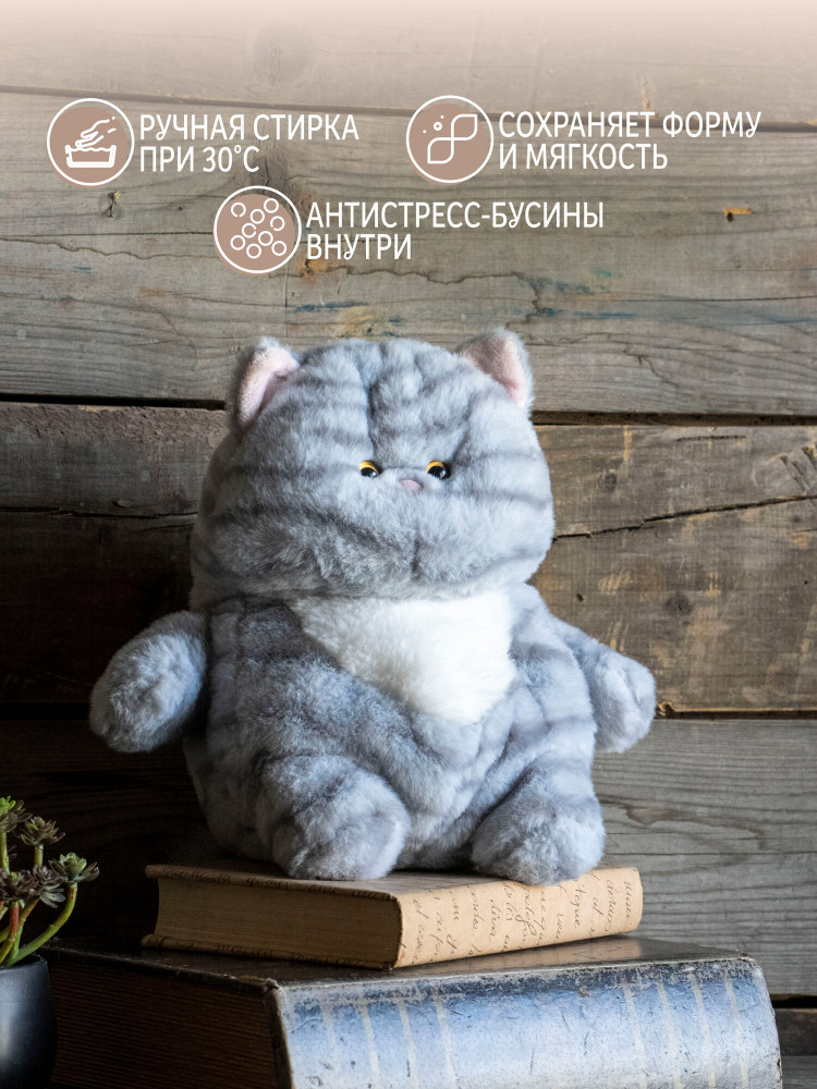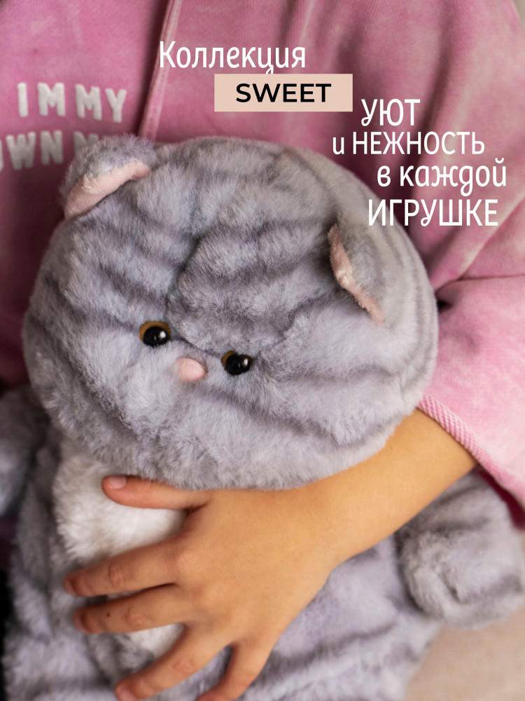 Серия: Sweet Мягкая игрушка кот Бергамот из коллекции Sweet — универсальный подарок для всех возрастов. Серый полосатый котик с белым животом, яркими глазками и розовым носиком приятен на ощупь, безопасен и способствует развитию тактильных ощущений. Идеален для сна, игр, поездок и как элемент декора. Станет лучшим другом и подарит уют. |