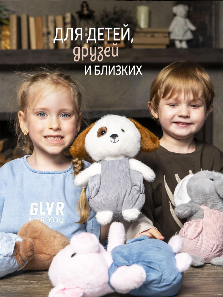 Серия: Sweet Плюшевая собачка Пятнышко из коллекции Sweet — милый и тактильно приятный подарок для детей и взрослых. Белый пес с коричневыми ушками и пятнышком одет в серый комбинезон. Игрушка выполнена из мягкого плюша с надёжно закрепленными деталями, безопасна и способствует развитию мелкой моторики. Это универсальный подарок на любой праздник, а еще его удобно брать с собой. |