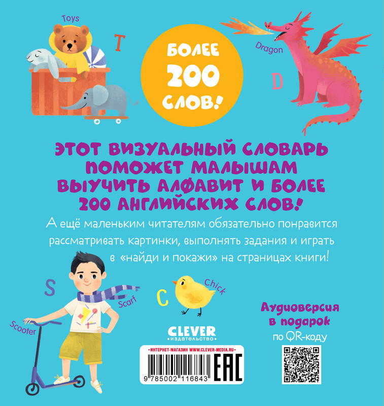 Мой первый английскийновинка В данный момент этот товар отсутствует в продаже. Возможно, у нас найдется аналогичный или похожий товар здесь. Серия: Первые книжки малыша Этот визуальный словарь поможет малышам выучить алфавит и более 200 английских слов! А ещё маленьким читателям обязательно понравится рассматривать картинки, выполнять задания и играть в «найди и покажи» на страницах книги! |