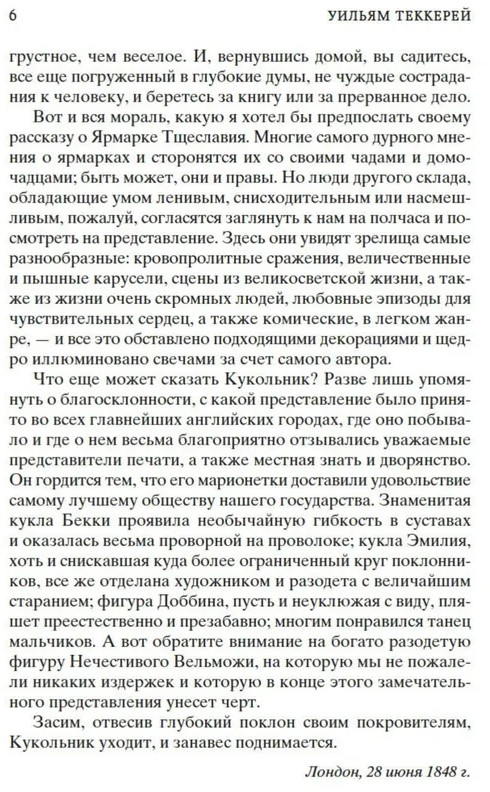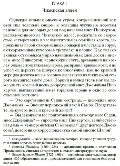 «Ярмарка Тщеславия» — не только самый известный роман викторианского писателя Уильяма Теккерея, но и одно из самых читаемых произведений во всем мире. На страницах этой книги развертывается широкая панорама жизни Англии первой половины XIX века. Длинной вереницей проходят перед читателем люди разных социальных кругов: дельцы, аристократы, чиновники, члены парламента, помещики, военные, дипломаты, гувернантки, лакеи. Все они живут по законам «ярмарки», где все продается и все покупается, где всем правит успех и богатство. Следить за тем, как их судьбы переплетаются между собой, образовывая причудливые узоры и картины, — чрезвычайно увлекательно.