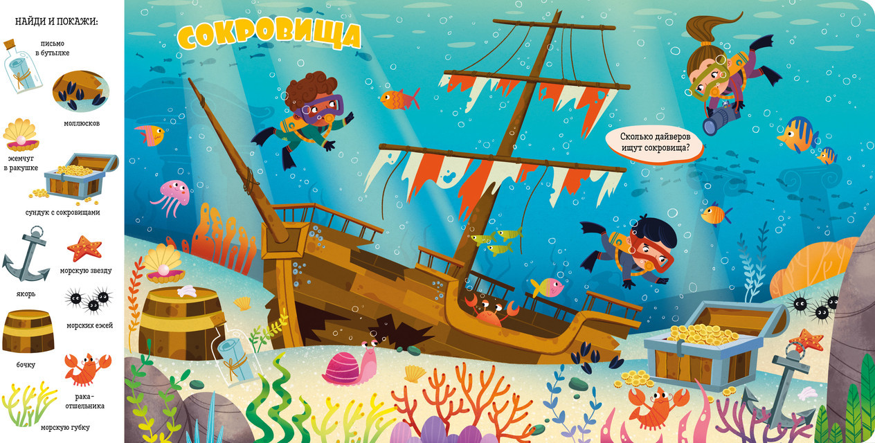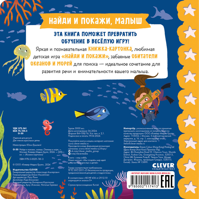 Серия: Книжки-картонки «Найди и покажи, малыш. Океаны и моря» — познавательный виммельбух с яркими иллюстрациями для детей от 1 года до 2, 3 лет. |