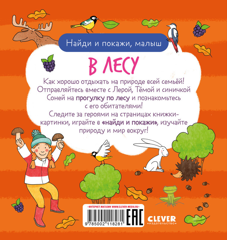 Серия: Найди и покажи, малыш Дети очень любят игру «найди и покажи»! По большим детальным иллюстрациям этой книги можно придумывать истории, картинки интересно разглядывать. А еще вы можете вместе искать предметы, отмеченные на каждом развороте, — кто быстрее найдет ежевику? |