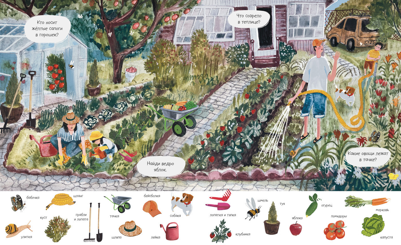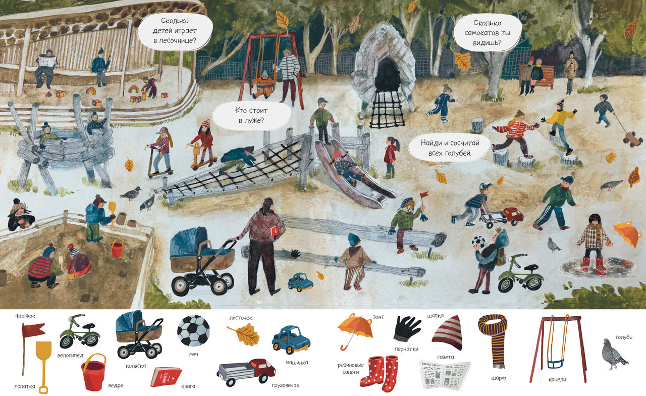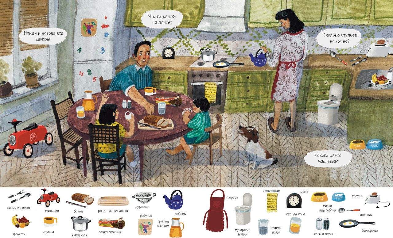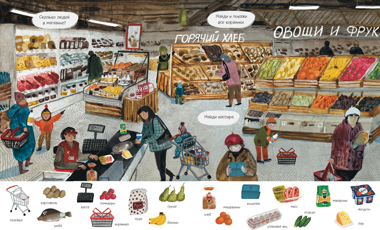 Серия: Найди и покажи Виммельбух «Первые слова» с иллюстрациями всемирно известной художницы Леры Хаус и любимой детской игрой на поиск предметов познакомит вашего малыша с удивительным миром вокруг нас. Внутри 10 тематических разворотов: В ванной, В комнате, На даче, На кухне, В парке, В детском саду, В магазине, В зоопарке, В городе, На пляже. Ищите все, что спрятано на картинках, выполняйте интересные задания, повторяйте знакомые названия, изучайте новые и пополняйте словарный запас малыша. Более 200 объектов для поиска ждут маленьких исследователей на страницах этой книги! |