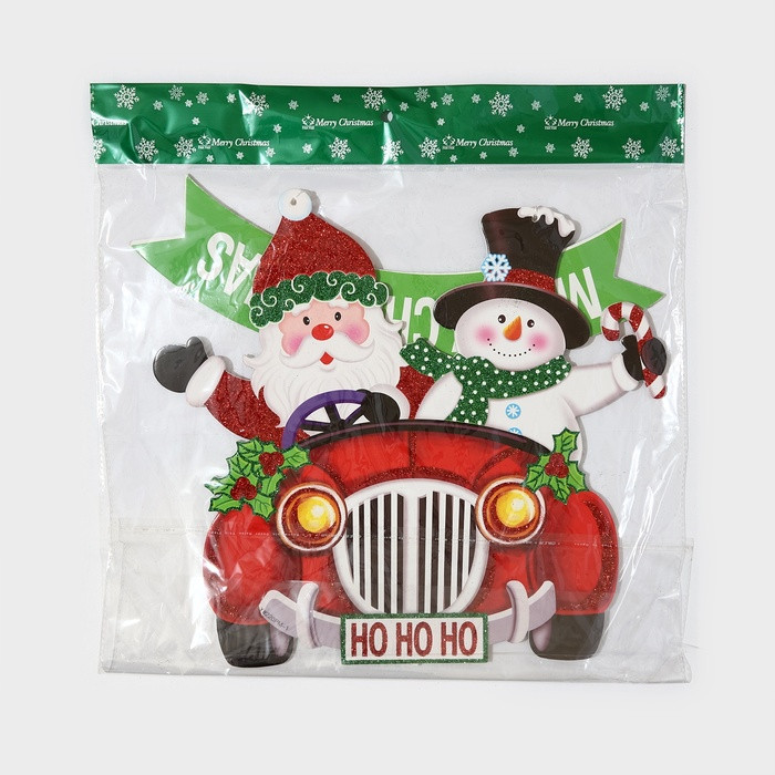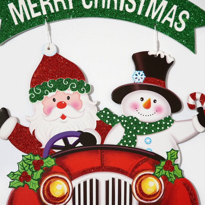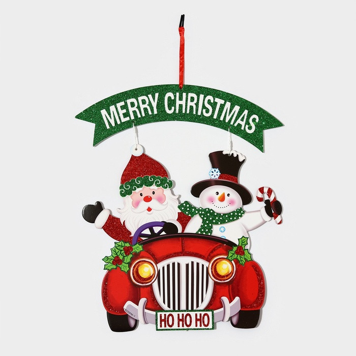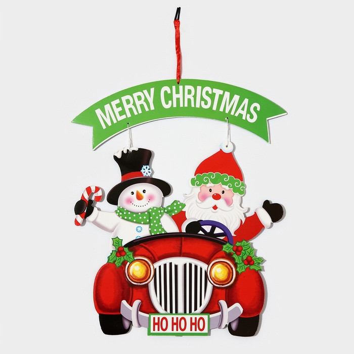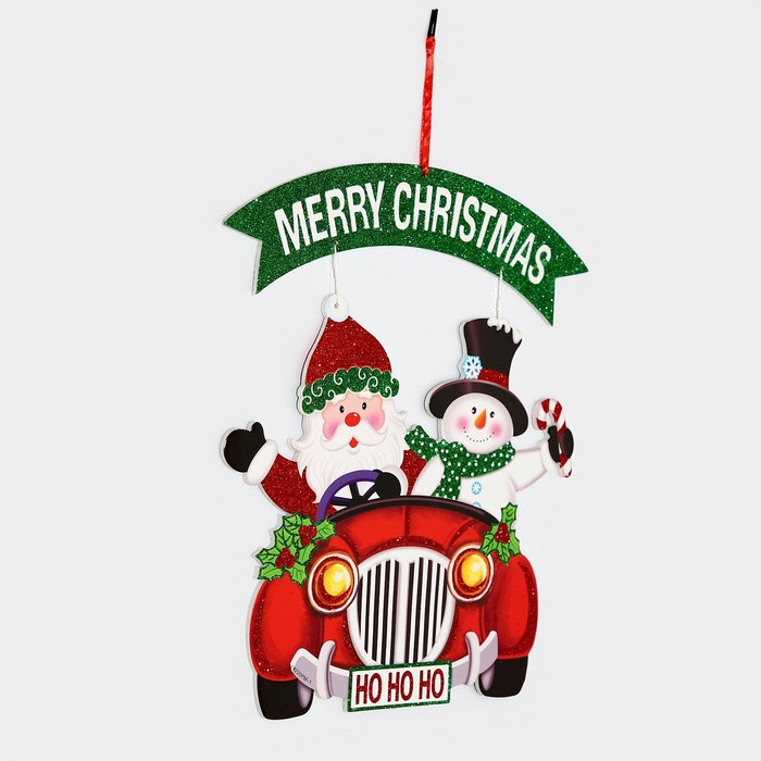 Украшение новогоднее настенное «Дед мороз и снеговик на автомобиле»новинка -25%
