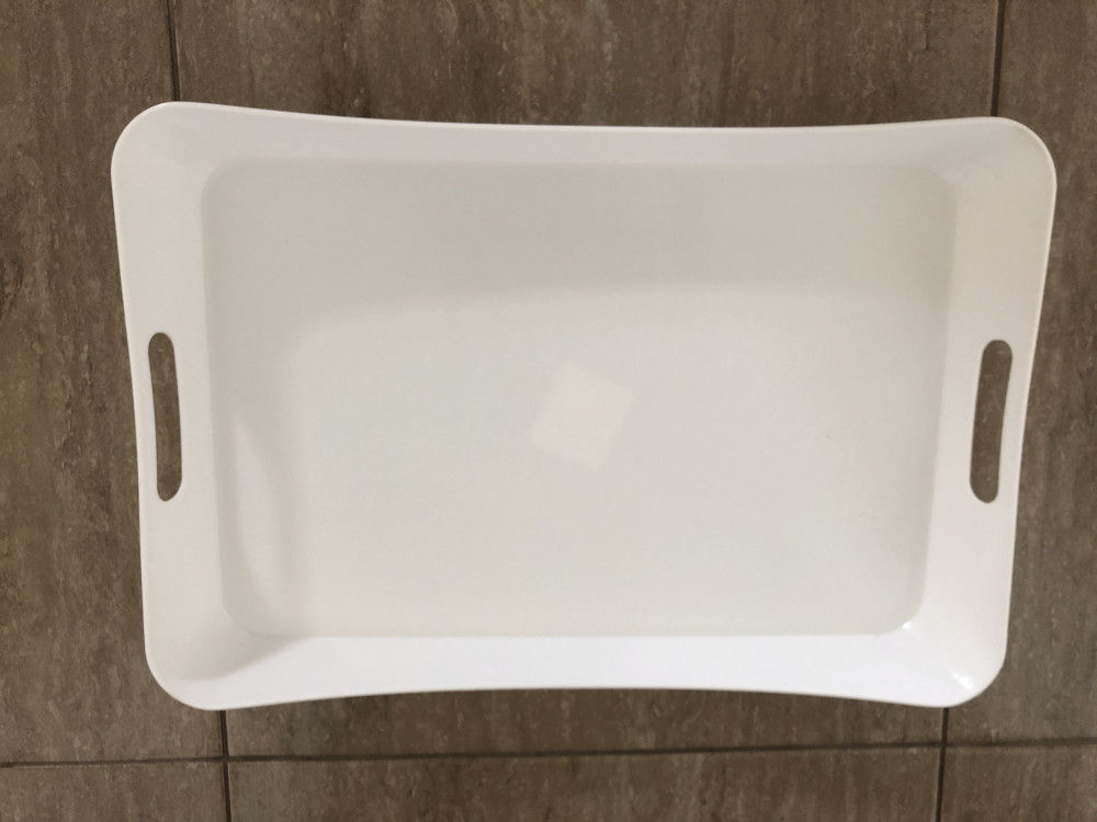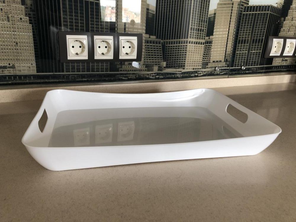Поднос за свою стоимость очень хорош, в белом цвете смотрится добротно, т.к. пластик не жесткий, может немного сгибаться.