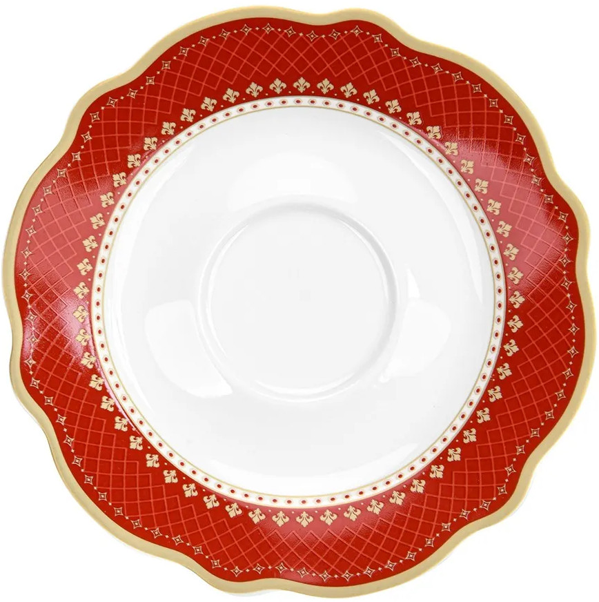 • блюдца с красным кантом и золотым орнаментом — изысканное сочетание, добавляющее торжественности даже утреннему кофе;