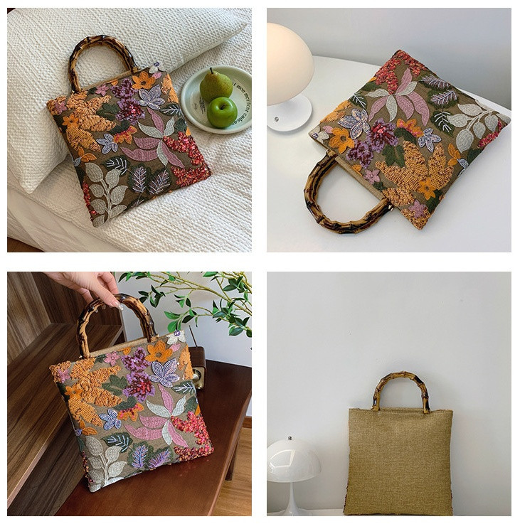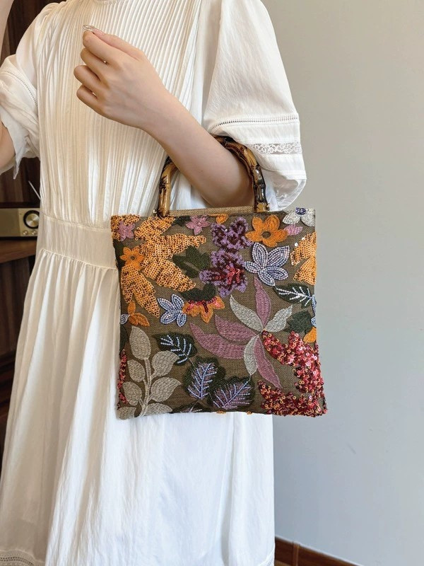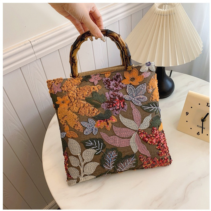 Сумка-тоут, выполненная из натурального джута с добавлением ярких пайеток, станет настоящим украшением вашего летнего гардероба. Эта модель создана для тех, кто любит выделяться из толпы и предпочитает яркие акценты в своем образе. Ее дизайн впечатляет своей изысканностью: центральное место занимает великолепный цветной принт с изображением цветов, каждый лепесток которого искусно вышит вручную. Блестящие пайетки добавляют сумке особенный шарм, играя на солнце и создавая эффект мерцания, словно светятся сами собой. Этот элемент делает вашу сумочку настоящей находкой для любителей стиля и красоты.