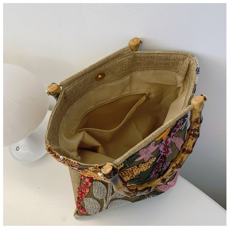 Сумка-тоут с вышивкой имеет достаточно места для хранения всех необходимых мелочей, будь то солнцезащитные очки, книга или косметичка. Удобная молния обеспечивает надежное закрытие, чтобы ваши вещи оставались в безопасности и были защищены от внешних воздействий.
