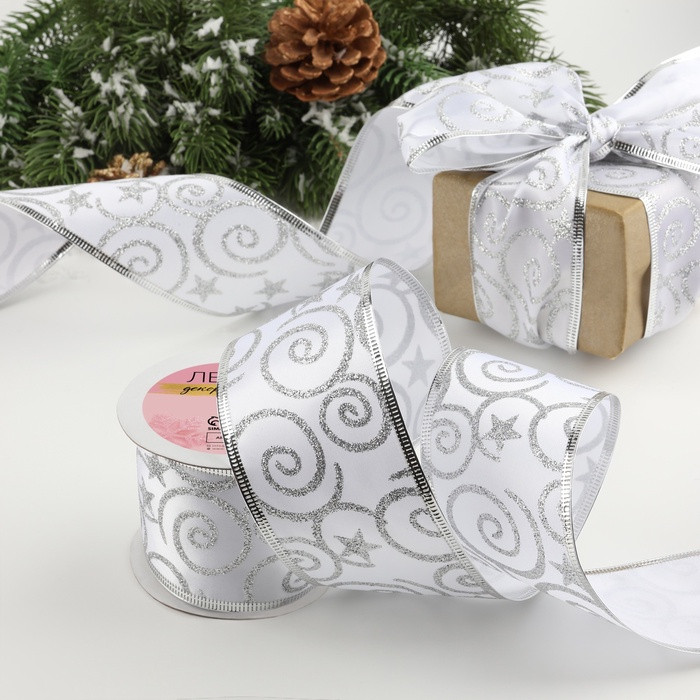 Арт Узор Лента атласная с металлической нитью «Узоры со звездой»