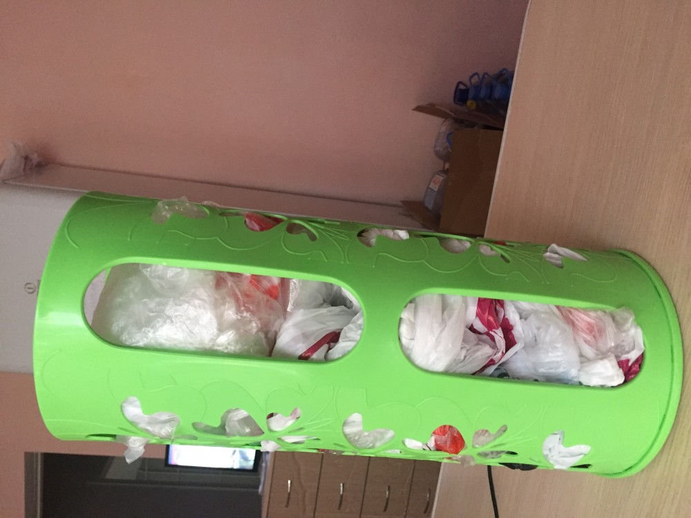 Вещь хорошая, удобная! Пластик хороший! Теперь пакеты все в одном месте и достать из корзины удобно. Рекомендую.
