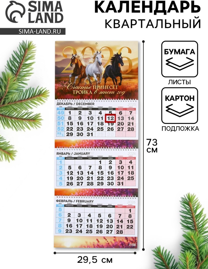 Sima-Land Home Календарь на 2026 год «Тройка лошадей»новинка -25%