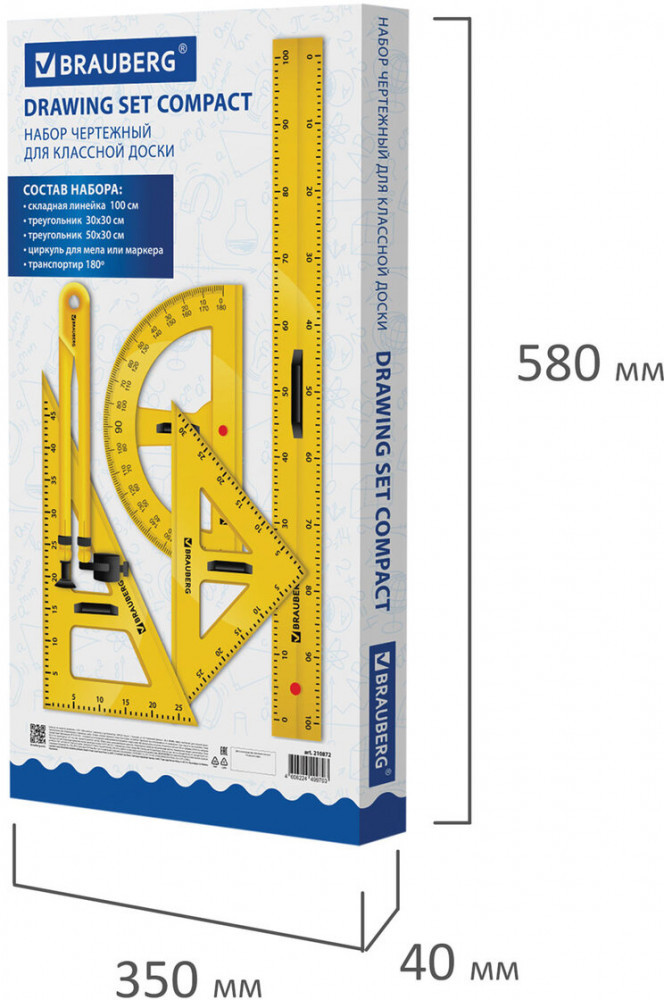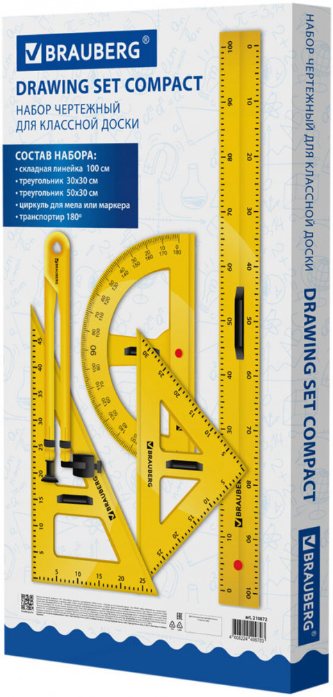 💳 Оплатить за товар можно при получении 🇰🇿 Есть бесплатная доставка по Казахстану от 1 дня 🎁 Копите бонусы с каждой покупки Набор чертежный Brauberg предназначен для выполнения чертежных работ на классных досках. |