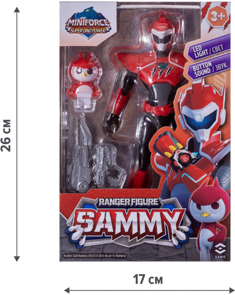 Серия: Miniforce Фигурка героя Сэмми из мультфильма Miniforce станет отличным пополнением коллекции игрушечных персонажей для детей. Этот детский робот трансформер создан по мотивам популярных мультиков про супергероев и роботов, что делает его желанным подарком для мальчика от 4 лет. Высокая детализация рейнджера Сэмми и яркий внешний вид позволяют детям полностью погрузиться в мир приключений вместе с любимыми героями мультиков. Игрушечная коллекционная фигурка высотой 23 см обладает подвижными деталями, благодаря чему ребенок сможет разыгрывать разнообразные сцены из мультика минифорс сила динозавров или придумывать собственные истории. 11 точек артикуляции обеспечивают свободу движений: супергерой может принимать динамичные позы, готовиться к битве с врагами и защищать мир от злодеев. В наборе также присутствует мини-герой — фигурка животного около 6 см, а для битвы предусмотрено специальное оружие: бластер и кинжал, которые делают игровой процесс ещё более захватывающим. Световые и звуковые эффекты придают реалистичности игре и позволяют детям почувствовать себя настоящими защитниками Вселенной. Благодаря качественным материалам игрушка безопасна для малышей, отличается прочностью и долговечностью даже при активном использовании. Собери всю команду коллекционных персонажей Miniforce, чтобы устраивать масштабные приключения или обмениваться ими с друзьями. Игрушки такого типа развивают фантазию, мелкую моторику рук, коммуникативные навыки и воображение ребенка. |