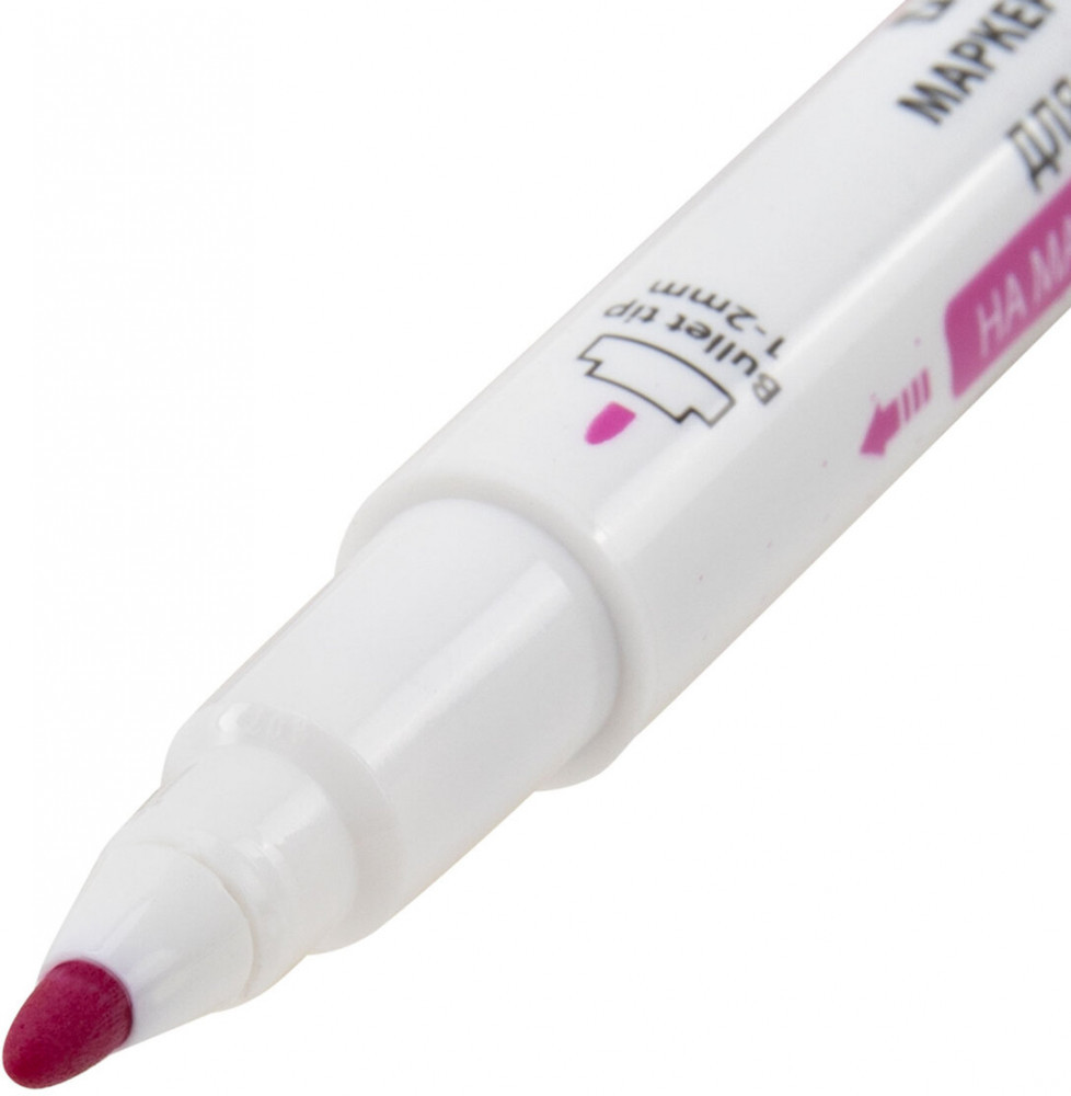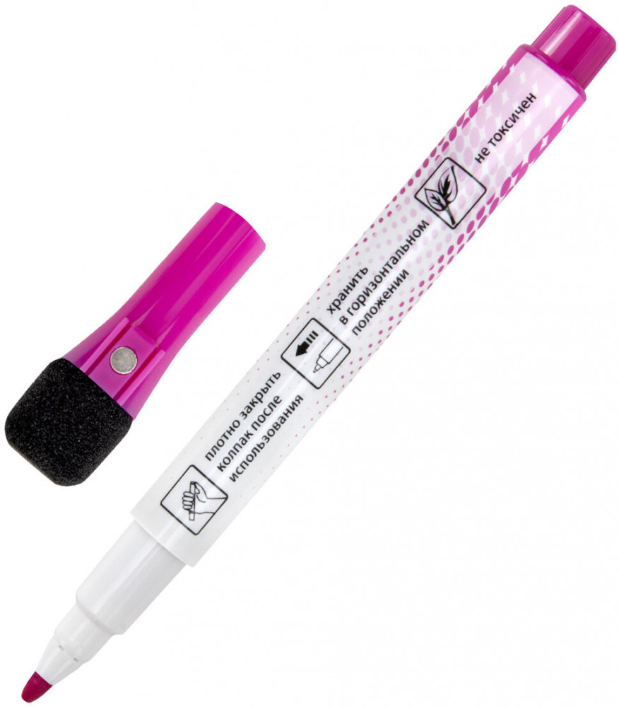 Круглый пластиковый корпус имеет диаметр 10 мм. Пулевидный наконечник обеспечивает толщину линии письма от 1 до 2 мм, что позволяет проводить тонкие линии и использовать маркер на небольших магнитных досках и планерах. Колпачок маркера оснащен магнитом, что делает его удобным в использовании и позволяет крепить маркер прямо на доске, планере или любом другом магнитном рабочем месте. Кроме того, в колпачке имеется удобная губка-стиратель для удаления записей. Чернила на спиртовой основе быстро высыхают и легко стираются сухой губкой, не оставляя разводов. Изделие не подлежит перезаправке. Цвет колпачка соответствует цвету чернил.