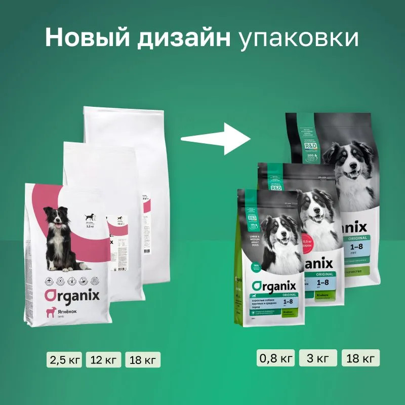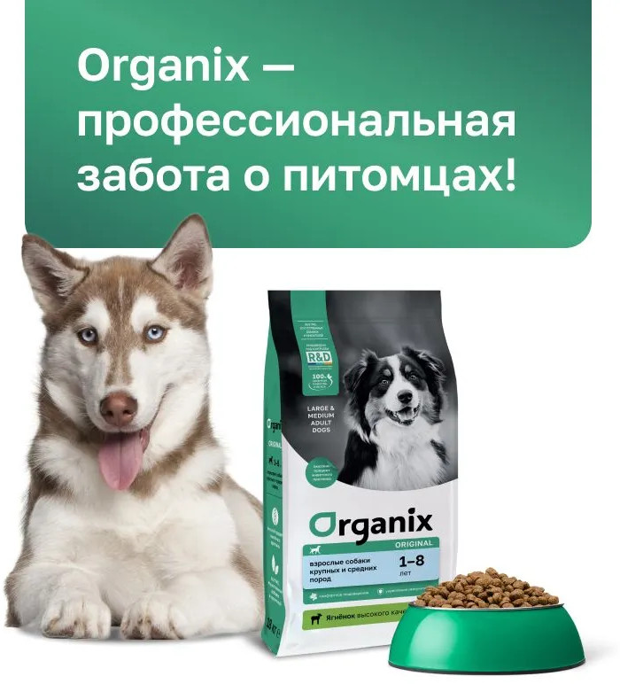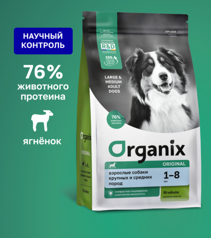 Organix Корм сухой для взрослых собак крупных и средних пород с ягнёнком, фруктами и овощами