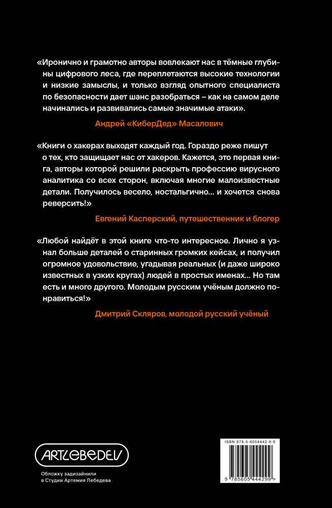💳 Оплатить за товар можно при получении 🇰🇿 Есть бесплатная доставка по Казахстану 🎁 Копите бонусы с каждой покупки Серия: КиберБез. Лучшие книги о безопасности в сети Как остановить мировую эпидемию компьютерного червя, расследовать ограбление банка на миллиард долларов, поймать космических хакеров и обнаружить шпионские импланты спецслужб в айфонах топ-менеджеров. Первый производственный роман о жизни и работе российских специалистов по кибербезопасности. |