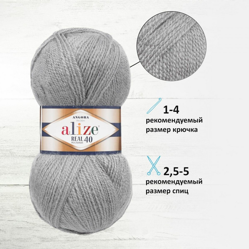 Пряжа для вязания «Real 40», цвет 87 средне-серый | Angora | Alize