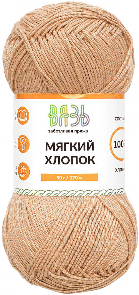 Пряжа для вязания «Мягкий хлопок», цвет 820 миндаль | Вязь