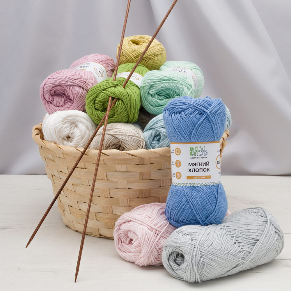 Пряжа Мягкий хлопок от бренда Вязь, изготовленная из 100% хлопка — это отличный вариант для создания вязаных вещей, которые будут радовать вас и ваших близких в теплое и переходное время года. Пряжа из 100% хлопка является одним из наиболее популярных материалов в рукоделии. Хлопковая пряжа является натуральным и экологичным продуктом, который дышит и не вызывает аллергических реакций. Это особенно важно для детей и людей с высокой чувствительностью к внешним раздражителям. Вещи, связанные из такой пряжи, будут нежными, мягкими и комфортными. Хлопок обладает отличными терморегуляционными свойствами, поэтому изделия из него подойдут как для прохладного летнего вечера, так и для теплой зимы в помещении. Она хорошо впитывает влагу, поэтому пряжа из хлопка подойдет для влажной погоды. Пряжа износоустойчива, поэтому изделия из нее будут служить долго, не теряя своей формы и цвета.