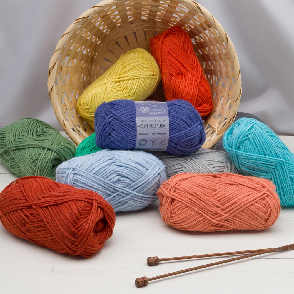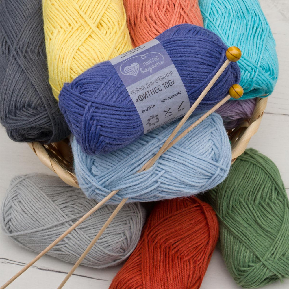 Пряжа «Фитнес» от торговой марки «Люблю вязать» позволяет создавать изделия для тех, кто ведет активный образ жизни. Отличный вариант для стильных и практичных спортивных комплектов, повязок на голову, носков и спортивных сумок. Трикотажные изделия из этой пряжи не сковывают движения и идеально подходят для любого вида спорта, будь то йога или фитнес. Пряжа «Фитнес» состоит из 100% полиэстера. Полиэстер — это синтетическое волокно, известное своей долговечностью. Пряжа очень прочная, мягкая, не вызывает аллергии. Нить классической крутки с небольшим пушком, тактильно имитирует шерстяную пряжу, но не колется и не скатывается. Вяжется легко и не скрипит.