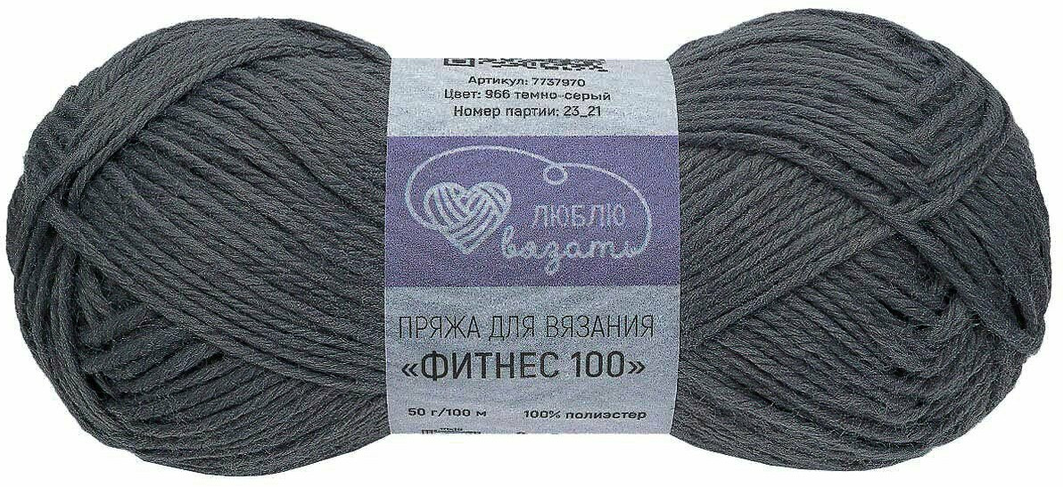 Люблю вязать Пряжа для вязания «Фитнес 100», цвет 966 темно-серый