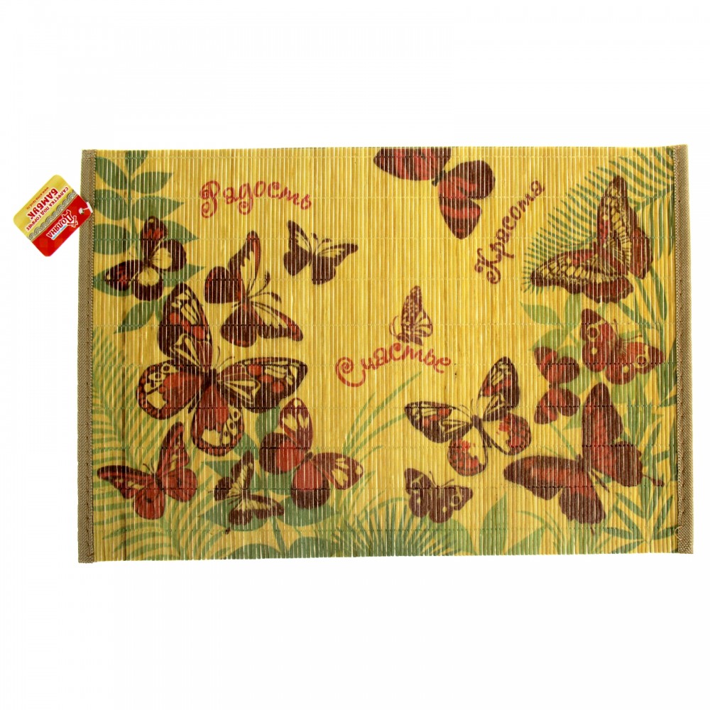 В данный момент этот товар отсутствует в продаже. Возможно, у нас найдется аналогичный или похожий товар здесь. Салфетка на стол «Радость, счастье, красота» используется для декорирования стола, в качестве подставки под посуду, бокалы и столовые приборы или для защиты любой поверхности. Она изготовлена из бамбуковых планок и палочек, прошитых прочной леской, с текстильной окантовкой по краям. Бамбуковая салфетка для стола обладает прекрасными внешними качествами и противомикробными свойствами, что особенно ценят люди, которые следят за своим здоровьем. Приятный рисунок и душевная надпись помогают салфетке органично вписаться в любой интерьер, делают её ярким аксессуаром в вашем доме.