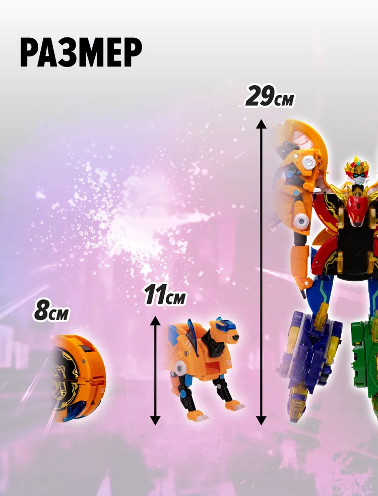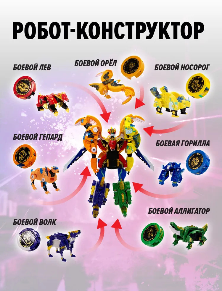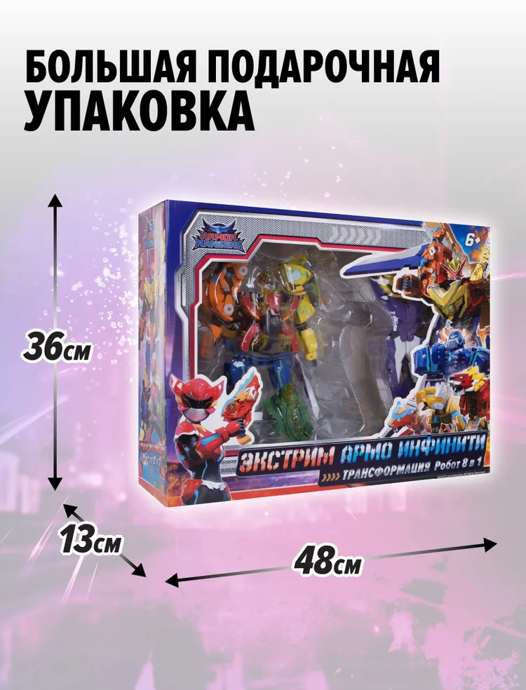 💳 Оплатить за товар можно при получении 🇰🇿 Есть бесплатная доставка по Казахстану 🎁 Копите бонусы с каждой покупки Робот-трансформер Армо Экстрим Инфинити (Король Боевых Зверей) от бренда Armor Rangers — это уникальная игрушка для детей, которая будет интересна как мальчикам, так и девочкам, она перенесет их в увлекательную вселенную нового анимационного мультфильма Armor Rangers в тематике Метавселенной и Искусственного интеллекта. Гигантский робот состоит из 7 Боевых Зверей: Лев, Горилла, Гепард, Волк, Носорог, Аллигатор, Орёл. Робот разбирается на 7 отдельных роботов-трансформеров, каждый из которых также имеет два режима игры: Боевое Ядро и Боевой зверь! |