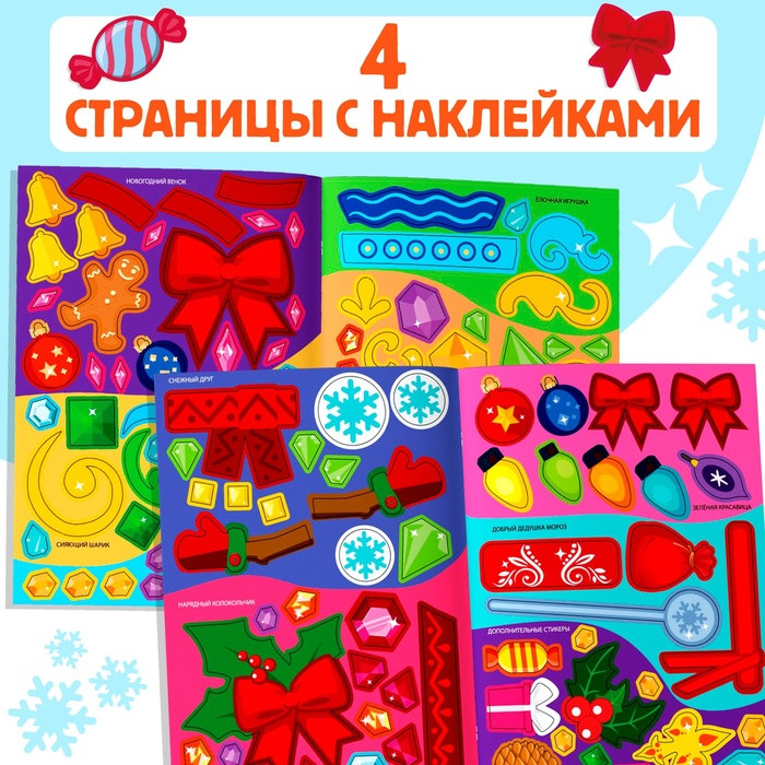 Новогодняя книга с наклейками «Укрась нас». Занятия с книжкой помогут малышу скоротать время в ожидании праздника и потренировать важные навыки. Внутри малыш найдёт нескольких ребят, которым необходимо помочь им одеться и подготовиться к празднику. Задача ребёнка — дополнить основу наклейками, чтобы получился уникальный в образ. Чтобы малыш не запутался, какой наряд кому подходит, на листе с наклейками есть подсказки. Прикрепляя наклейки в книге, малыш тренирует мелкую моторику, аккуратность, усидчивость, а также пространственное мышление и сообразительность. Рекомендовано для детей старше 3 лет. |