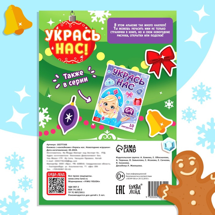 Книжка с наклейками «Укрась нас. Новогодние игрушки»новинка