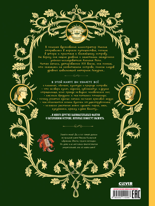 Серия: Энциклопедия волшебных существ В поисках вдохновения иллюстратор Никола отправилась в морское путешествие, попала в шторм и пристала к ближайшему острову. На берегу она нашла дневник с заметками загадочного учeного-исследователя Алоизия Репы. Читая записи, датированные XIX веком, она поняла, что оказалась на необитаемом острове, полном следов древних цивилизаций материка Лемурия... |