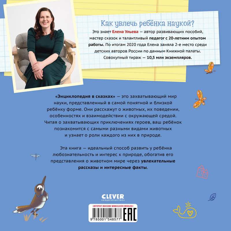 Серия: Энциклопедия в сказках «Энциклопедия в сказках. Животные» — это захватывающий мир науки, представленный в самой понятной и близкой ребенку форме. Они расскажут о животных, их поведении, особенностях и взаимодействии с окружающей средой. Читая о захватывающих приключениях героев, ваш ребёнок познакомится с самыми разными видами животных и узнает о роли каждого из них в природе. Эта книга — идеальный способ развить у ребенка любознательность и интерес к природе, обогатив его представления о животном мире через увлекательные рассказы и интересные факты. |
