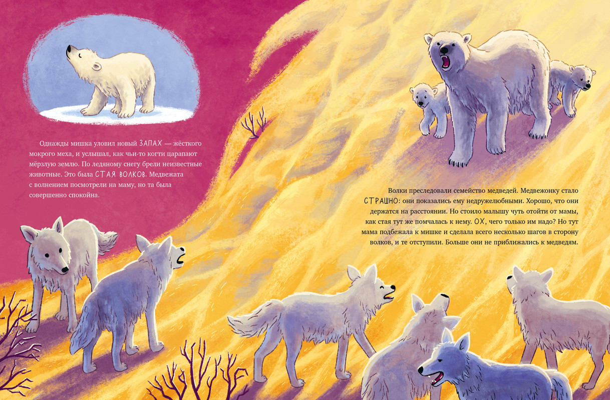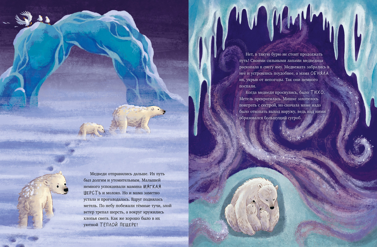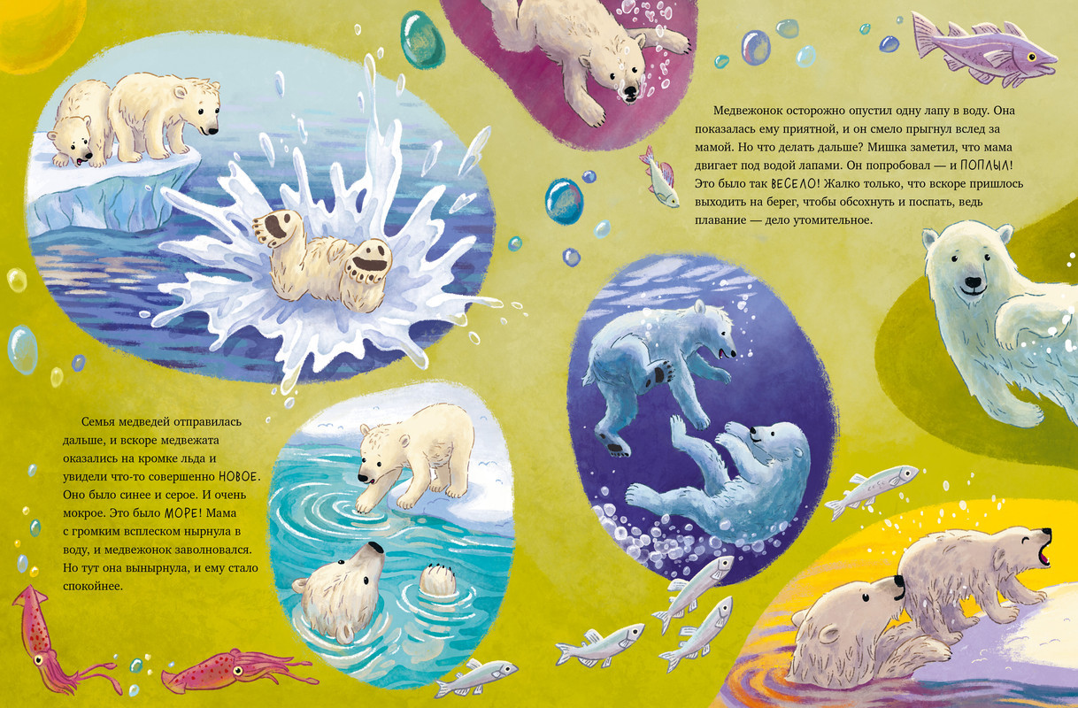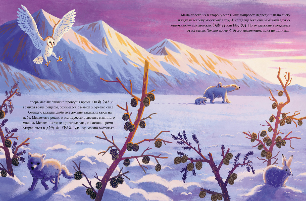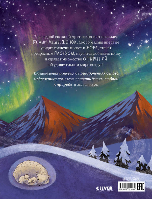 Серия: Удивительные животные Книга с доброй историей «Белый медвежонок. Приключения в Арктике» — это прекрасное первое чтение. Интересные, но при этом простые и понятные тексты и детальные большие иллюстрации познакомят маленьких читателей с окружающим миром, с жителями холодного Севера и с приключениями белых медведей. В холодной снежной Арктике на свет появился белый медвежонок. Скоро малыш впервые увидит солнечный свет и море, научится плавать и добывать пищу, сделает множество открытий об удивительном мире вокруг! Захватывающая книга о белых медведях и животных Арктики понравится малышам 2, 3, 4, 5 лет и идеально подойдет для первого чтения или для чтения в детском саду. |