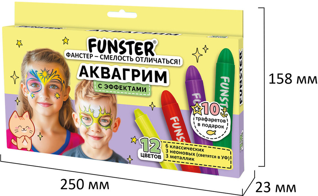 Funster Аквагрим для лица и телаВ данный момент этот товар отсутствует в продаже. Возможно, у нас найдется аналогичный или похожий товар здесь. Аквагрим для лица и тела позволит ребёнку примерить на себя новые интересные образы и будет незаменим не только на празднике или карнавале, но и в повседневных играх. Аквагрим имеет восковую основу и абсолютно безвреден при контакте с детской кожей лица и тела. Отвечает требованиям EC к косметическим продуктам. Мелки прошли дерматологическое тестирование. Краски легко смываются. В комплект входят трафареты. Поставляется в картонной коробке с европодвесом. |