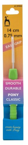 Тонкий вязальный крючок Pony предназначен для создания ажурных вещей — салфеток, шалей, кардиганов и др. Изготовлен из стали высокого качества. Крючок имеет оптимальную для вязания гладкую поверхность, отличается высокой прочностью и упругостью, идеально защищен от коррозии. Прорезиненная ручка удобной эргономичной формы облегчает работу. Прилагается защитный колпачок.