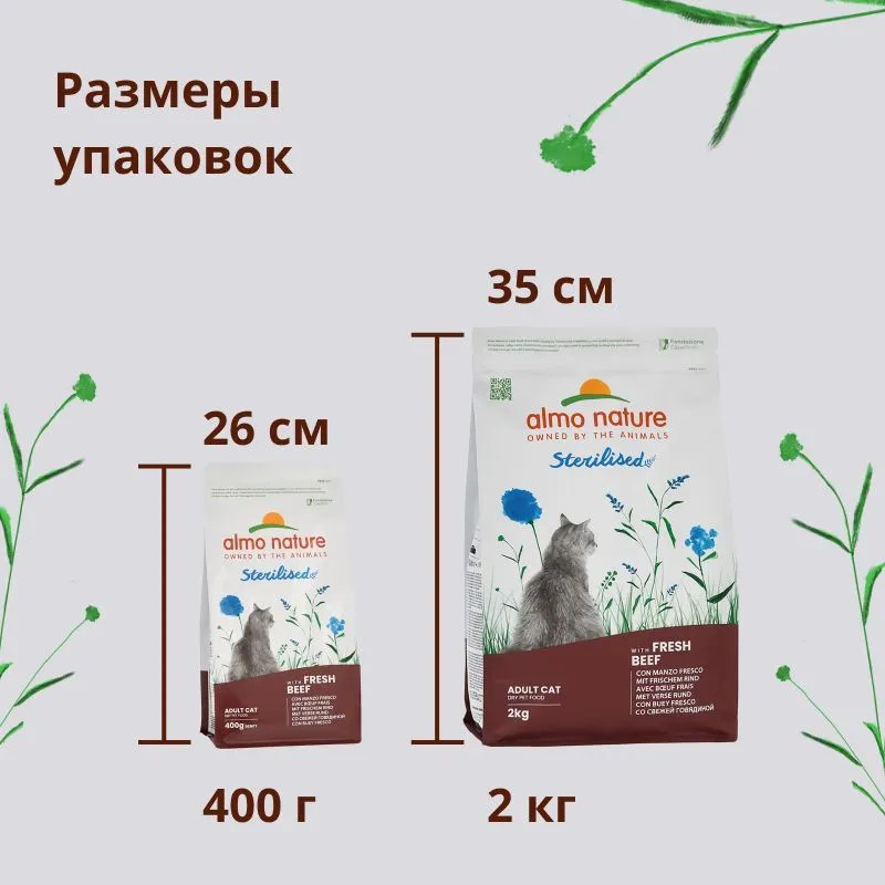 Almo Nature Корм сухой для стерилизованных кошек со cвежей говядиной и коричневым рисом