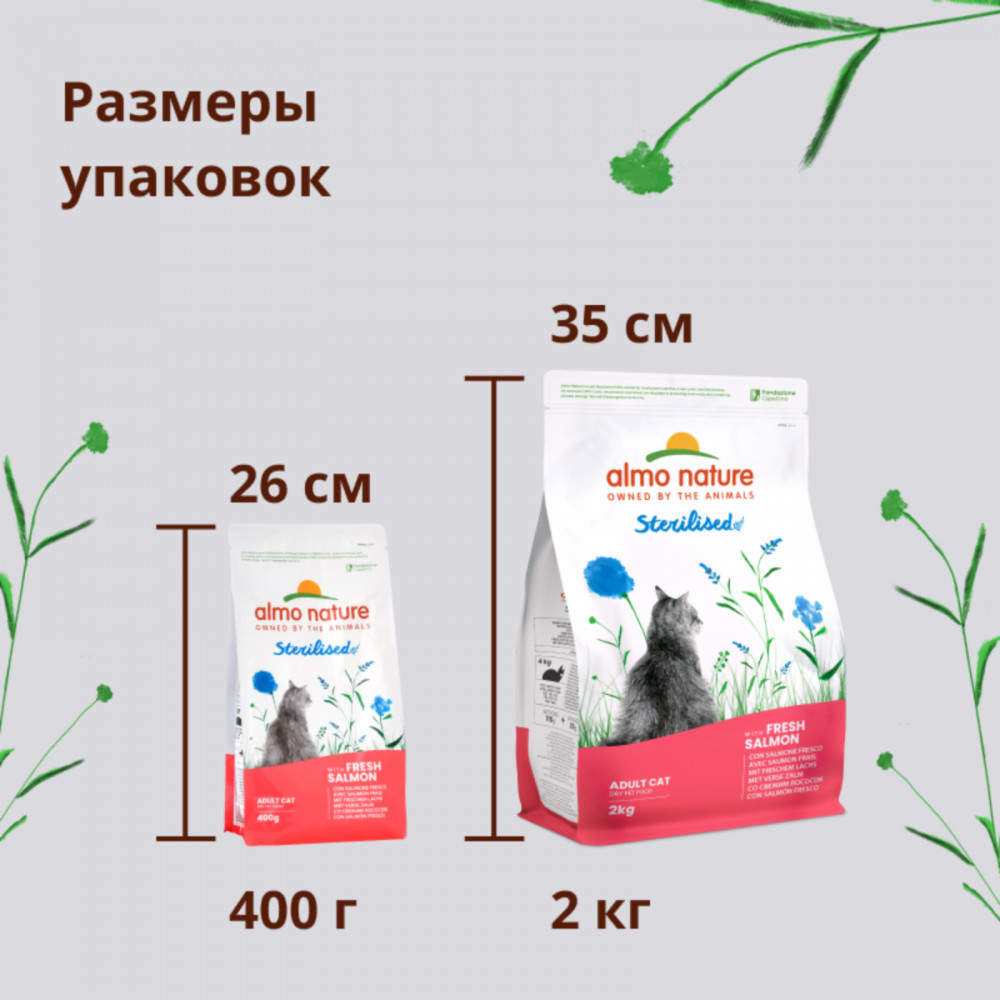 Almo Nature Корм сухой для стерилизованных кошек со свежим лососем и коричневым рисом
