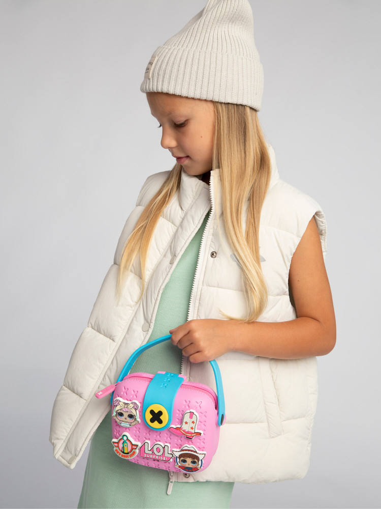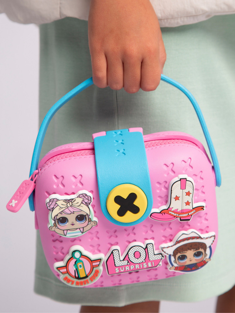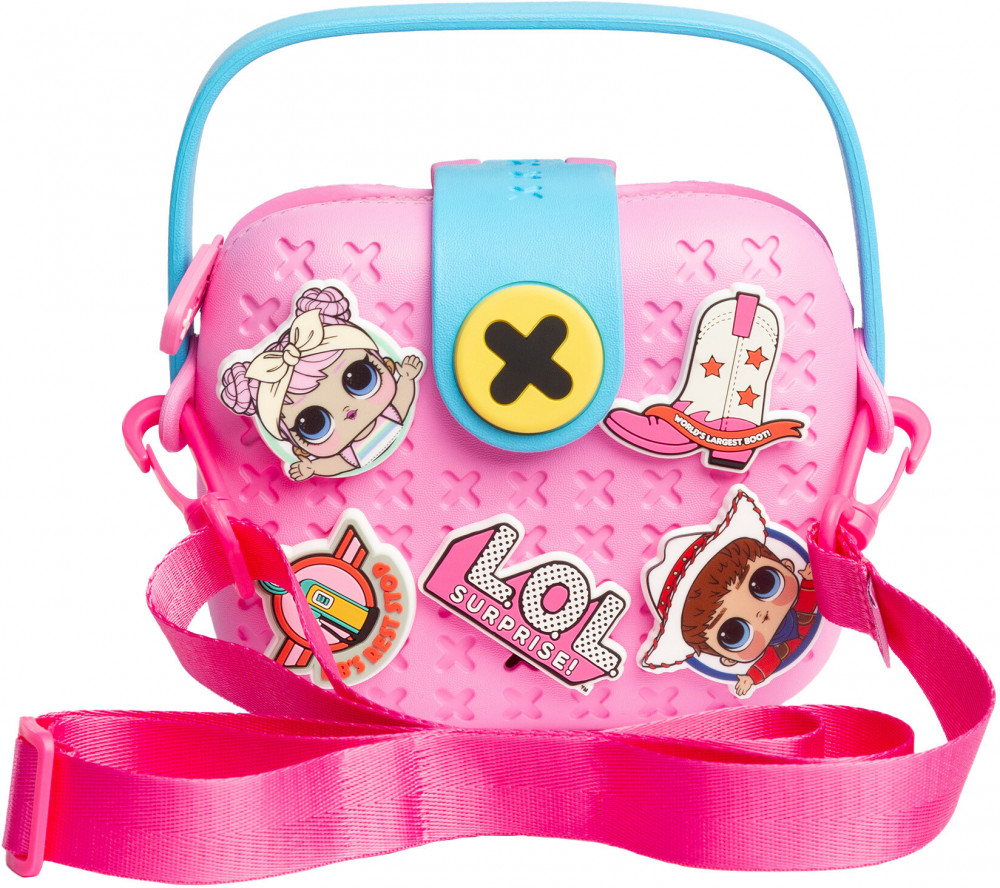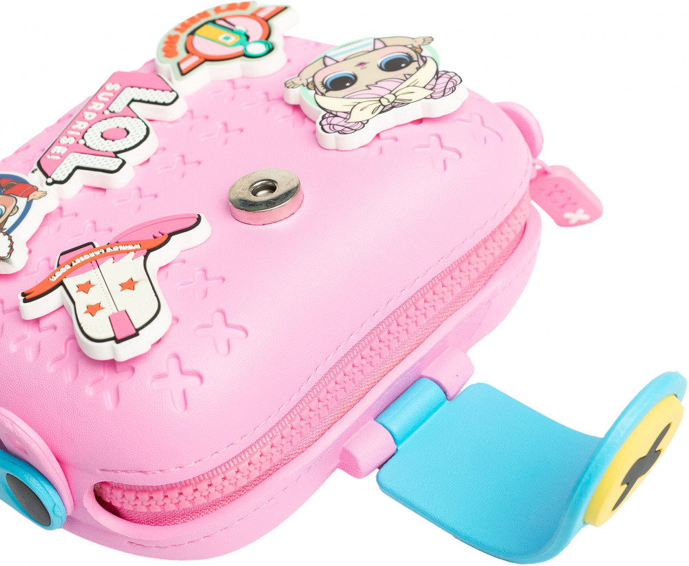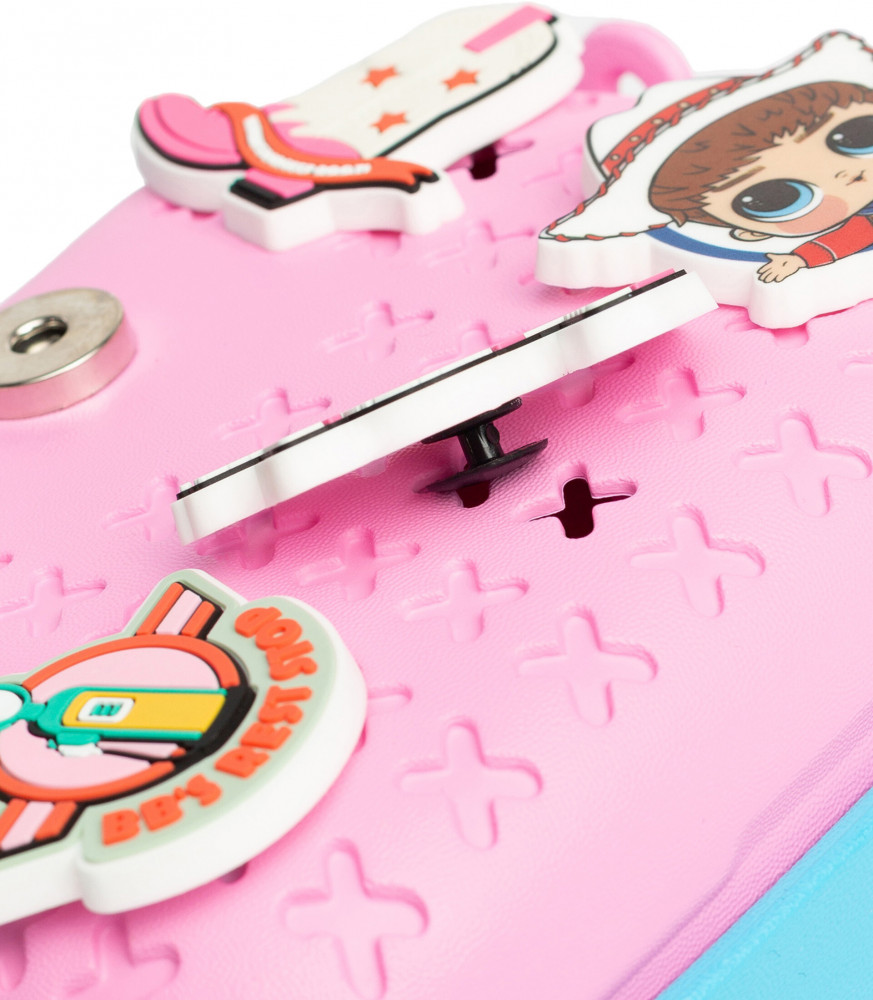 Яркая розовая сумка на застёжке с дизайном по мотивам популярного бренда L.O.L. Surprise! Её оригинальный внешний вид со съёмными элементами, ремешком и милой застёжкой оценит каждая юная модница! Аксессуары-джиббитсы можно легко менять, создавая уникальный образ хоть каждый день. Сумочка достаточно вместительна для хранения монеток, карточек и других мелочей. Сумка прекрасно держит форму, что обеспечивает его долговечность и сохранение аккуратного вида даже при самом активном использовании. Изделие легко очищается от загрязнений, благодаря прорезиненному материалу. Сумочка станет отличным подарком для каждой маленькой поклонницы L.O.L. Surprise! Это не просто дополнение к образу, а настоящая находка для творческих личностей, которые любят экспериментировать с модой. Подарите своему ребенку возможность выделяться среди других! В комплект входит 5 джиббитсов. Аксессуар подойдёт как для повседневных прогулок, так и для особых случаев — он отлично дополняет наряд в день рождения или праздники. Позвольте вашему ребенку создать свой уникальный стиль. Регулируемый ремешок обеспечивает комфорт при ношении, а компактные размеры делают сумочку подходящей даже для самых маленьких модниц. Застёжка надёжно сохранит содержимое сумочки. Стильный и практичный выбор на каждый день!
