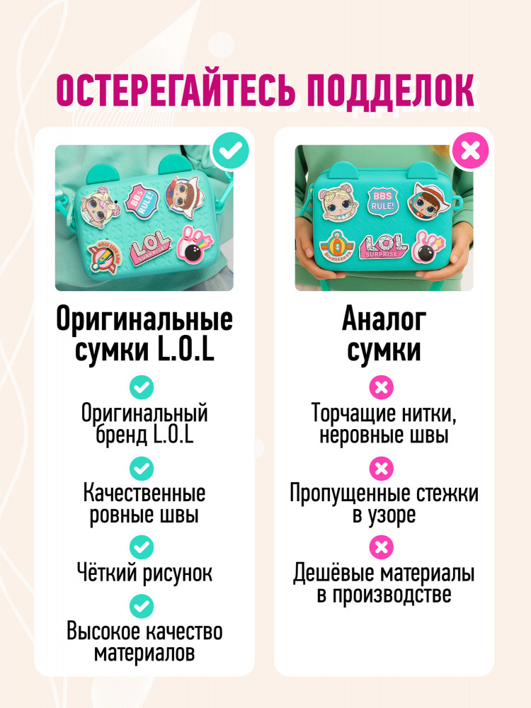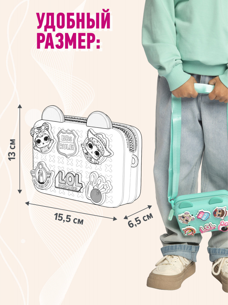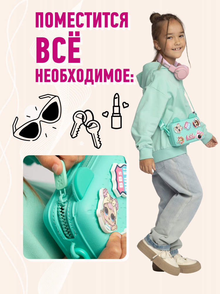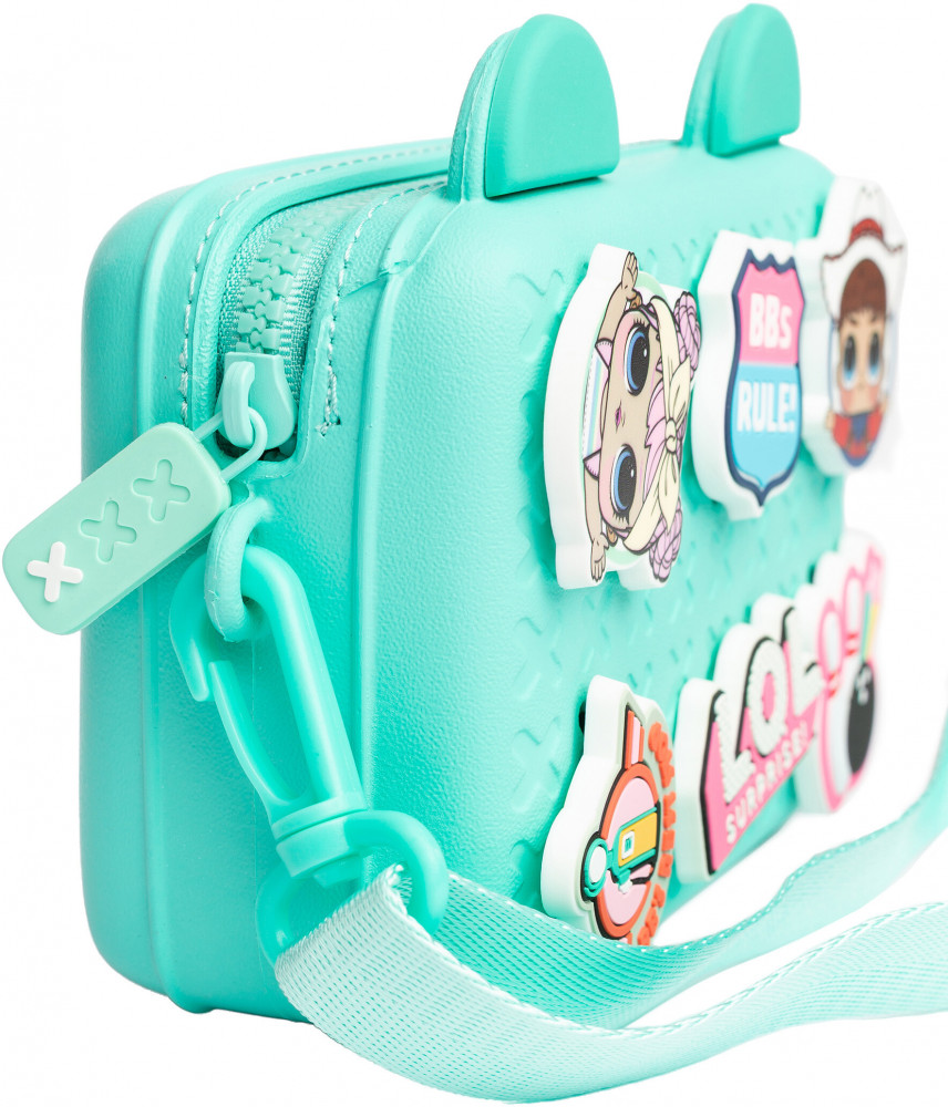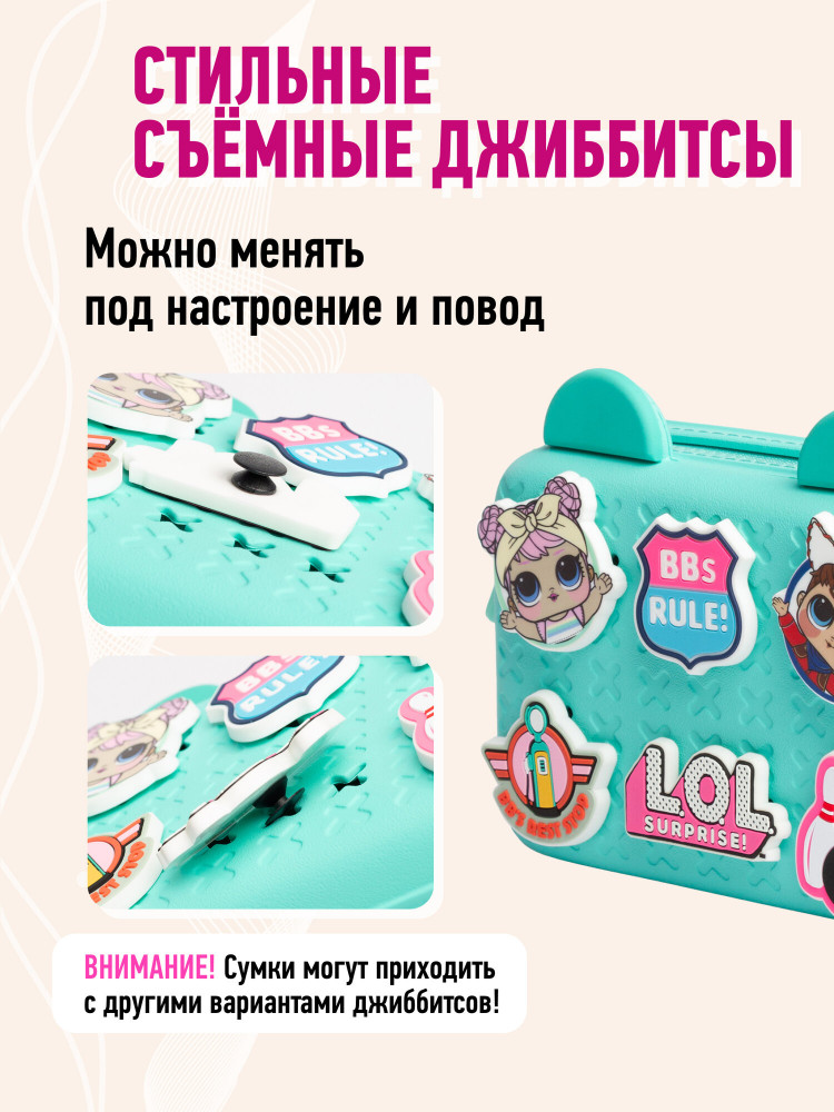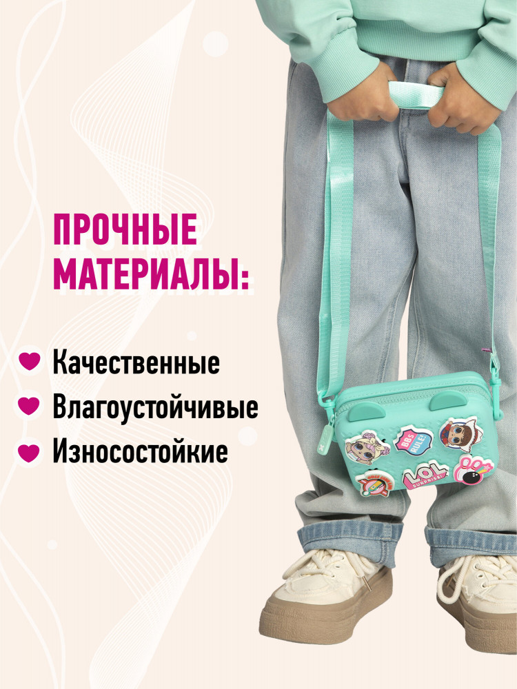 Яркая розовая сумка с дизайном по мотивам популярного L.O.L. Surprise! станет стильным аксессуаром для девочек. Её оригинальный внешний вид с ушками и съёмными элементами оценит каждая юная модница! Аксессуары-джиббитсы можно легко менять, создавая уникальный образ хоть каждый день. Эта функциональная модель подойдёт для повседневного использования. Сумочка достаточно вместительна для хранения монеток, карточек и других мелочей. Сумка с ремешком прекрасно держит форму, что обеспечивает его долговечность и сохранение аккуратного вида даже при активном использовании. Лёгкость в уходе позволит быстро очищать аксессуар от загрязнений, сохраняя его ярким и привлекательным на протяжении длительного времени. Сумка с милыми ушками станет отличным подарком для каждой маленькой поклонницы L.O.L. Surprise! Это не просто дополнение к образу, а настоящая находка для творческих личностей, которые любят экспериментировать с модой. Подарите своему ребёнку возможность выделяться среди других с помощью этого замечательного аксессуара! В комплект входит 6 джиббитсов. Сумочка подойдёт как для повседневных прогулок, так и для особых случаев — он отлично дополняет наряд в день рождения или праздники. Позвольте вашему ребёнку создать свой уникальный стиль! Этот рюкзак — не просто сумка для хранения вещей, а особый акцент в образе юной модницы. Регулируемые ремешки обеспечивают комфорт при ношении, а компактные размеры делают его подходящим даже для самых маленьких модниц. рюкзак представлен в двух ярких цветах: бирюзовый и розовый — выберите тот, что понравится именно вам. Стильный и практичный выбор на каждый день!