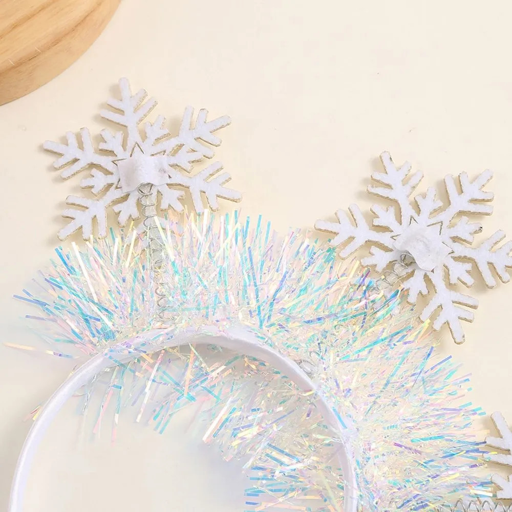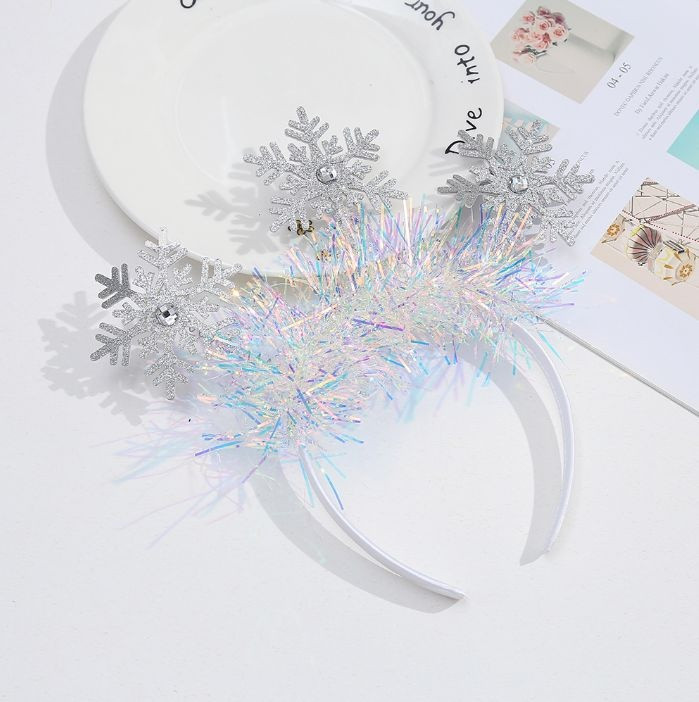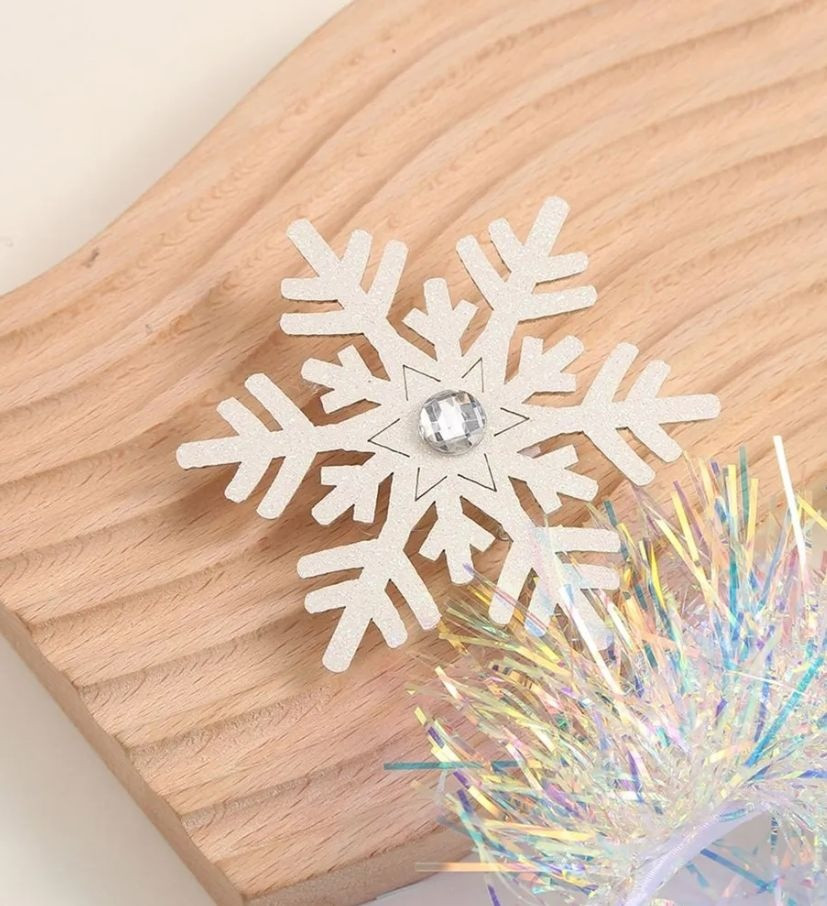 Прекрасный декор в виде снежинок с блестками, эластичный, легкий, универсальный размер. |