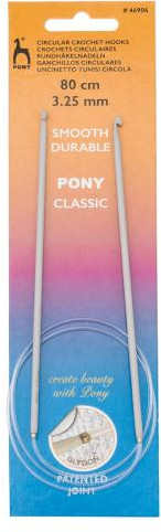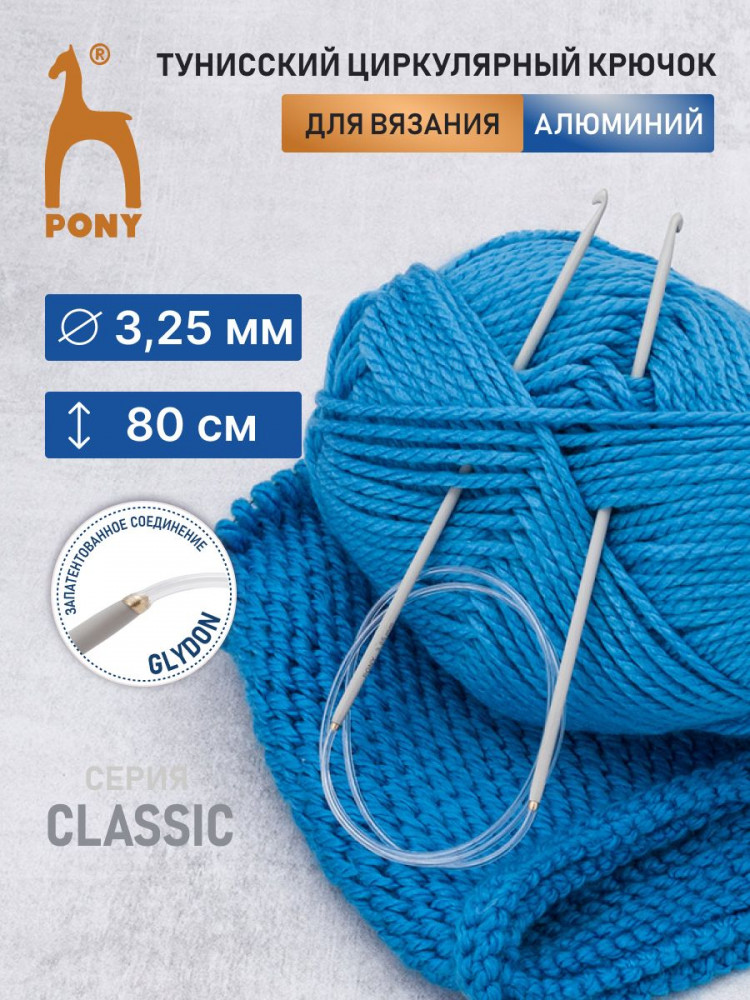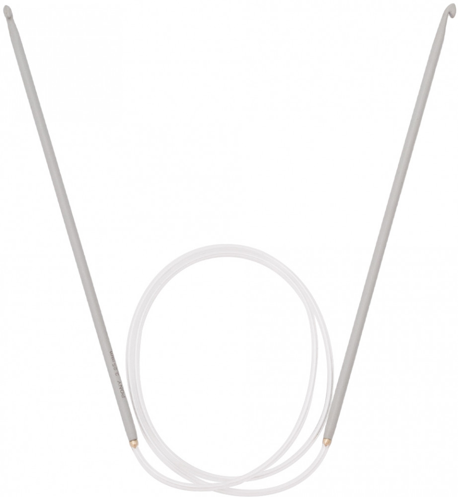 Крючки для вязания с тросиком от Pony порадуют рукодельниц своим качеством, оригинальным дизайном и удобством в применении. Крючки ориентированы на удобство при работе в тунисской (афганской) технике вязания. Два алюминиевых крючка с аккуратными головками классической формы объединены между собой гибким нейлоновым тросиком, как круговые спицы. Такая конструкция облегчает вывязывание объемных полотен с плотным узором и позволяет сократить расход пряжи. Идеально подходит для вязания различных бесшовных деталей одежды, а также носков или головных уборов.