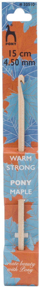 Крючок для вязания Maple от Pony — инструмент, специально разработанный для работы с тонкой пряжей и для создания салфеток, шалей, кардиганов и других ажурных вещей. Крючок вязальный изготовлен из качественной, плотной и упругой древесины клена. Клен — это прочный и износостойкий материал. Кленовые крючки долговечны, они не скалываются и не ломаются. Тщательно отшлифованный инструмент обладает гладкой, шелковистой поверхностью. Он не повреждает структуру нити и приятен на ощупь во время вязания.