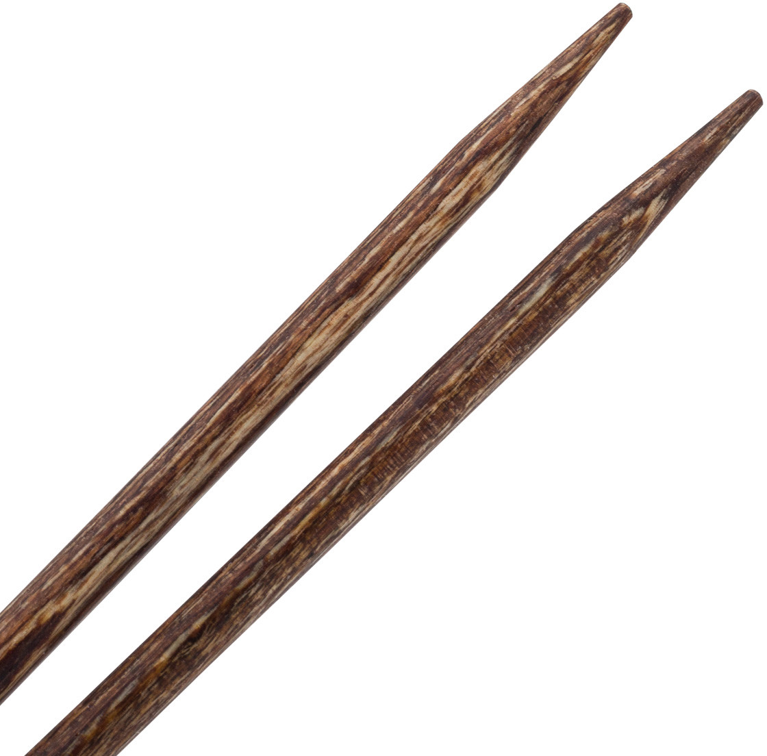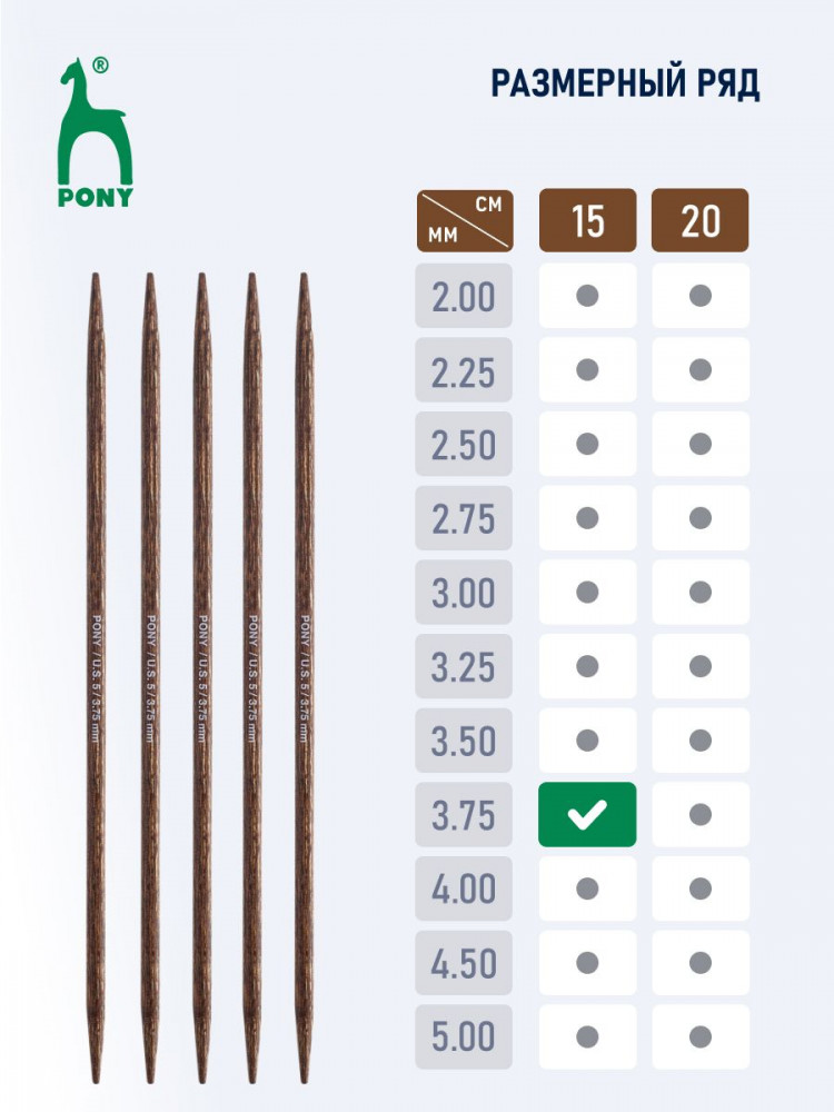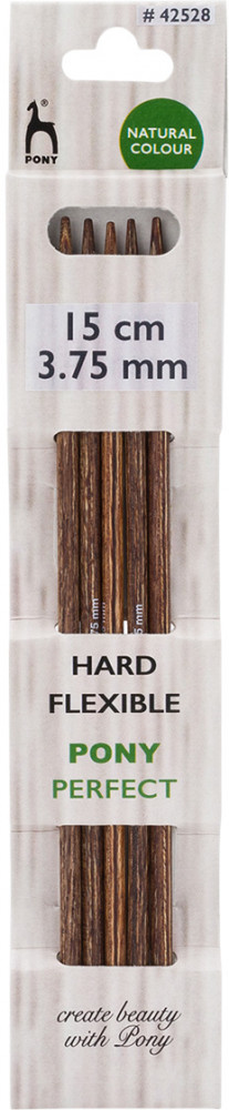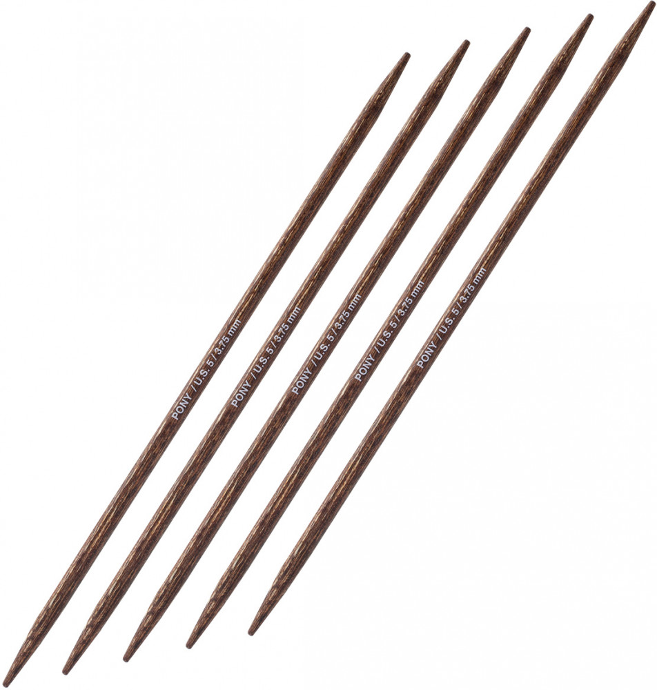 Спицы для вязания носочные Pony Perfect — специализированный инструмент, идеально подходящий для вязания изделий в круговой технике, таких как носки, чулки, гетры, манжеты и горловины свитеров. Для изготовления спиц используется древесина трех редких пород дерева: эвкалипта, падука и тика. Заготовка сырья ведется в лесах, где посадки деревьев возобновляются, позволяя избежать ущерба для природы. Технология производства аналогична той, что применяется при создании бильярдных киев: слои древесины подвергаются прессованию, после чего осуществляется шлифовка и полировка. Тщательно отшлифованные спицы обладают гладкой, шелковистой поверхностью. Они не повреждают структуру нити и приятны на ощупь во время вязания. Каждая пара спиц имеет уникальный древесный рисунок.