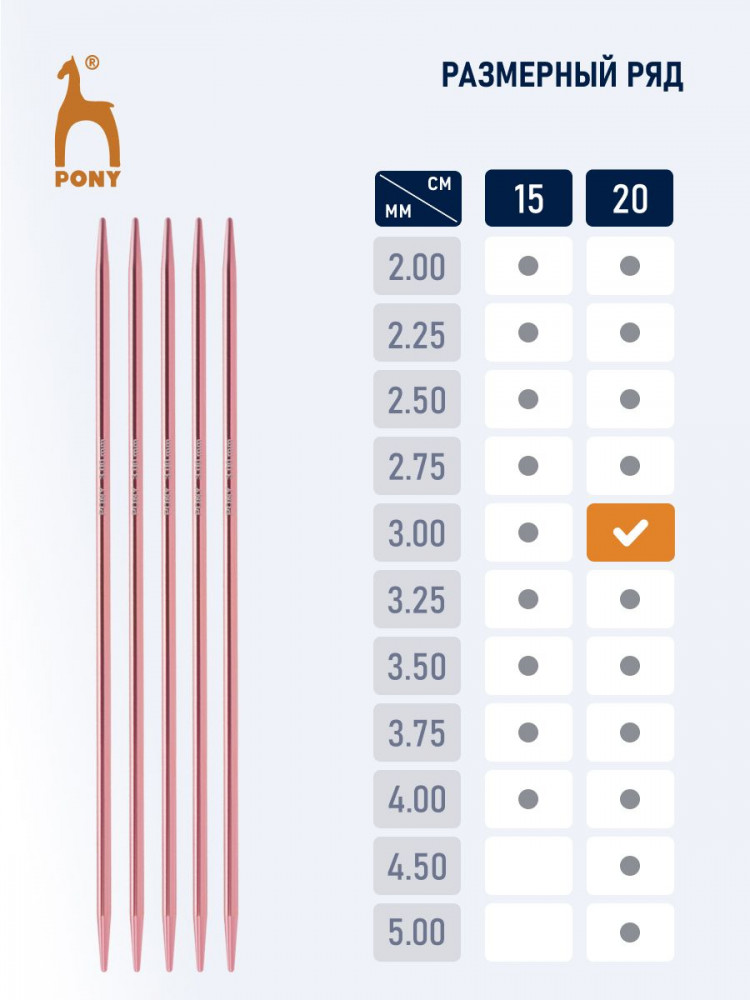 Спицы Pony снабжены нестираемой маркировкой с указанием размера, позволяя легко выбирать нужный инструмент для конкретного проекта. В комплект входят пять спиц одинаковой длины, без ограничителей. Классическая конфигурация- четыре спицы для распределения петель, образующих круговую вязку, и пятая спица, используемая для активного вязания. Важно помнить, что четкое распределение петель по четырем спицам обеспечивает равномерное натяжение и предотвращает искажения готового изделия. Пятая спица, работающая как основной инструмент, позволяет свободно манипулировать петлями и формировать нужный узор. Вязание с помощью носочных спиц Pony Colour превратится в настоящее удовольствие, даря радость творчества и вдохновляя на создание уникальных и неповторимых вещей.